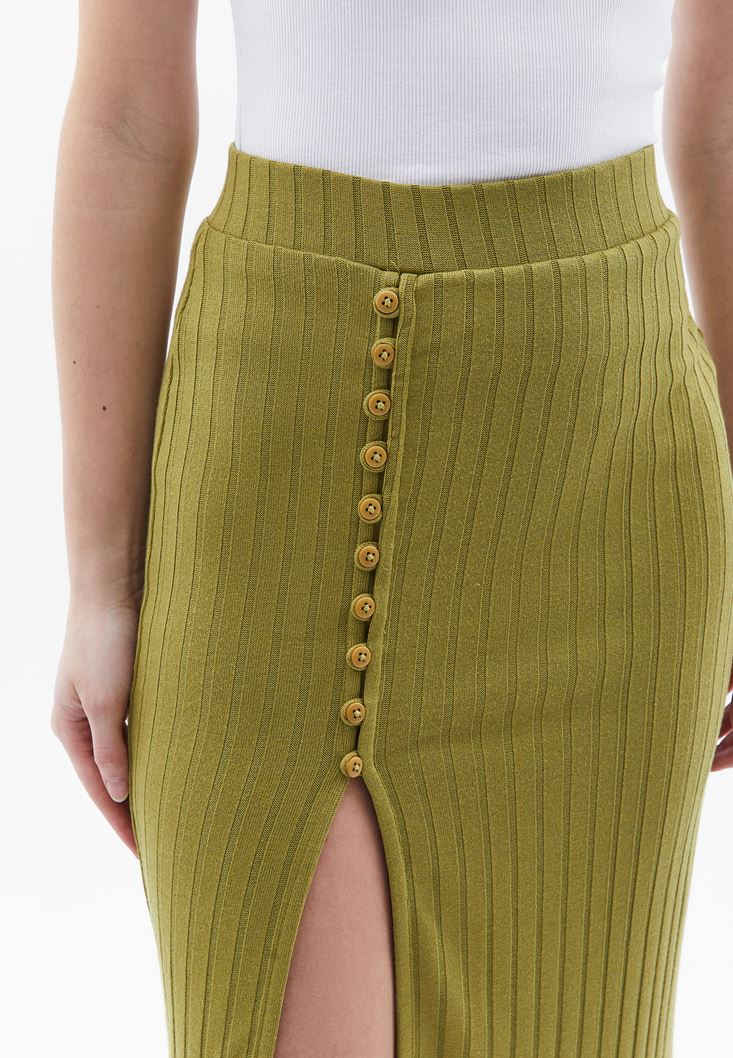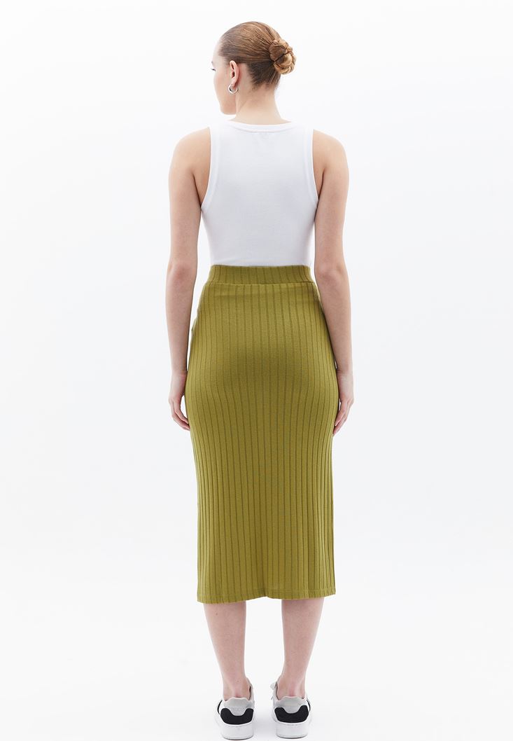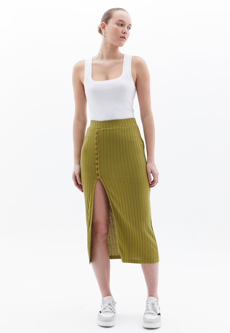 • Bayan Yeşil Yırtmaçlı Midi Etek