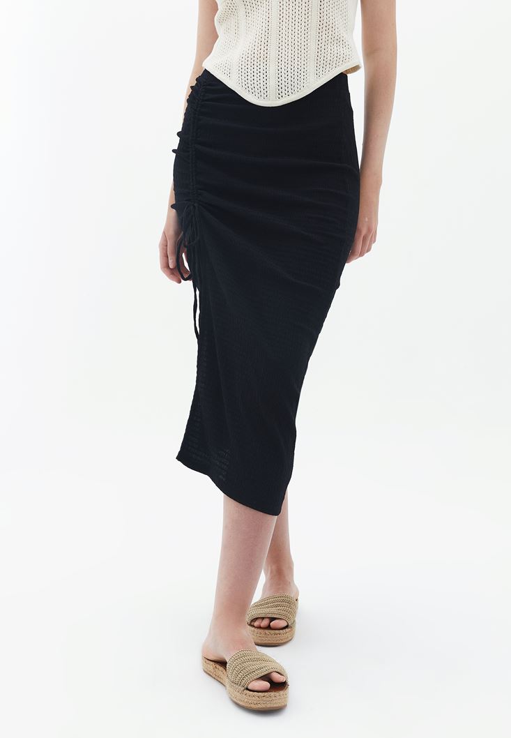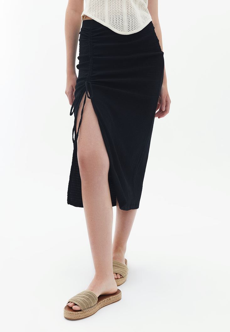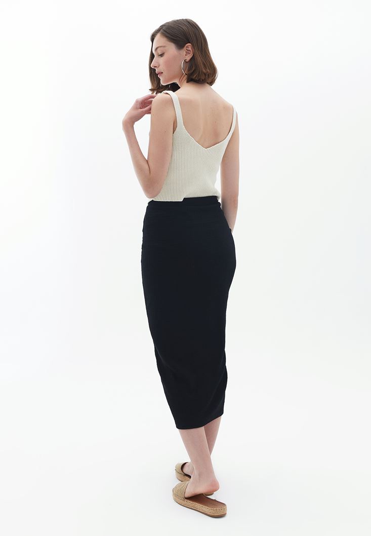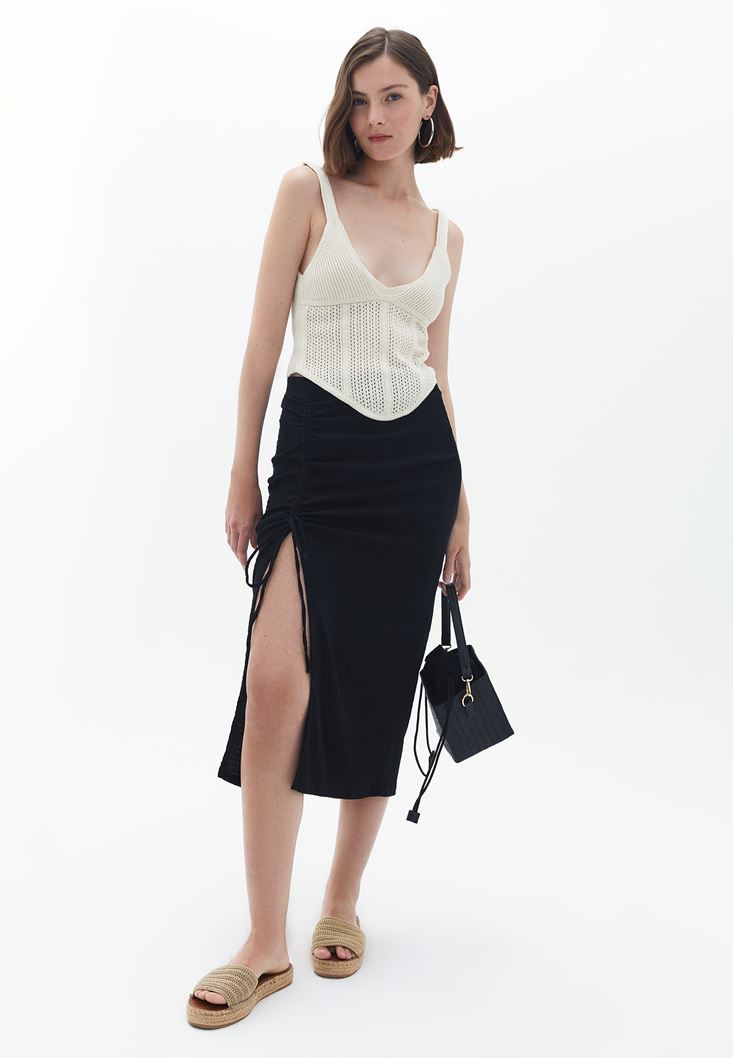 • Bayan Siyah Yırtmaçlı Midi Etek