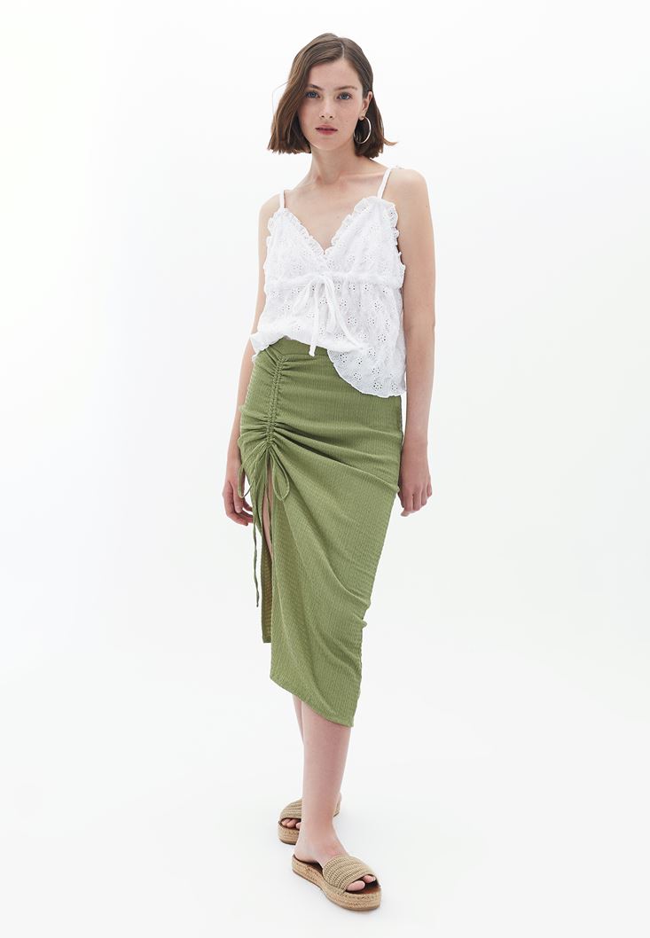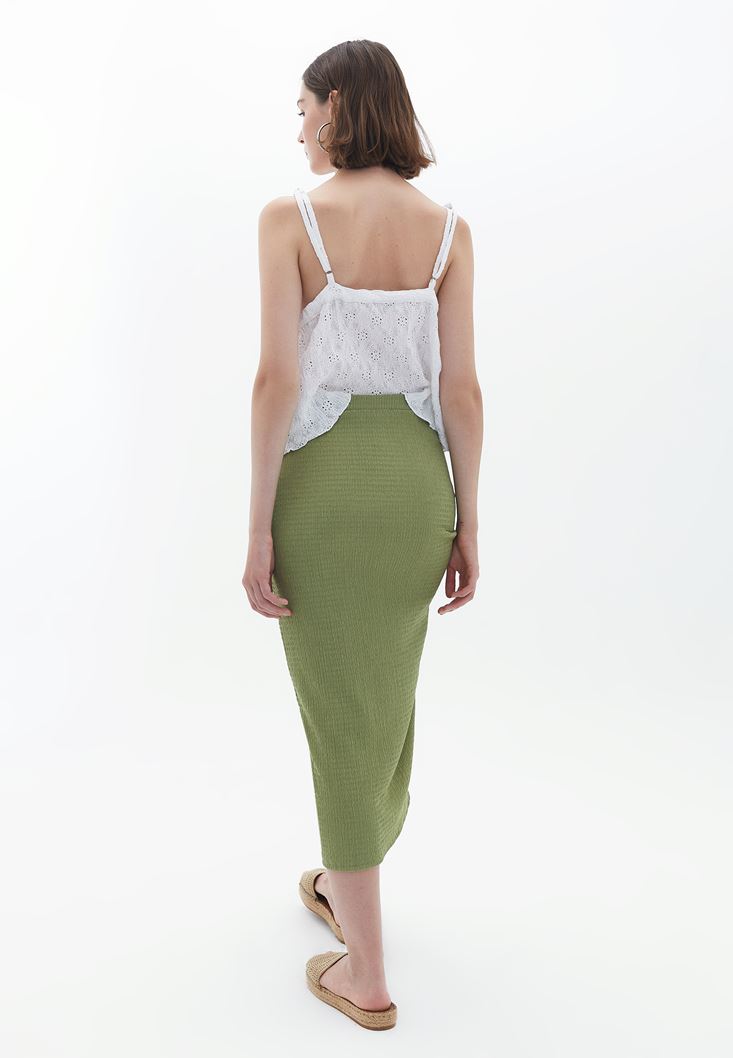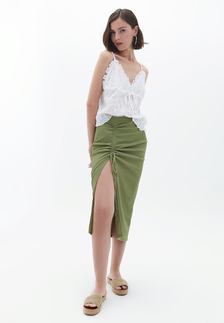 • Bayan Yeşil Yırtmaçlı Midi Etek