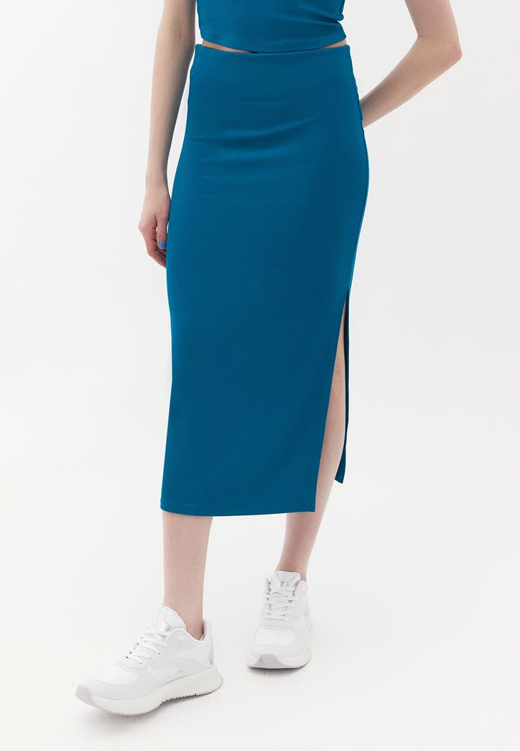 Bedene yakın esnek fit, midi boy, yüksek bel, ön kısmı tek yırtmaçlı.