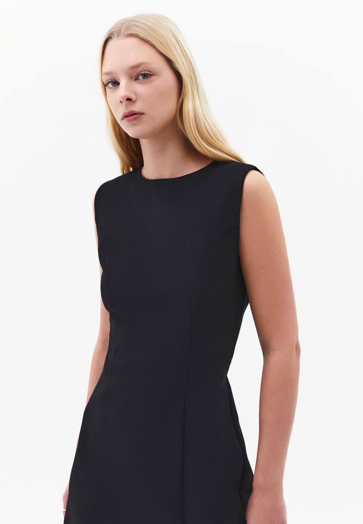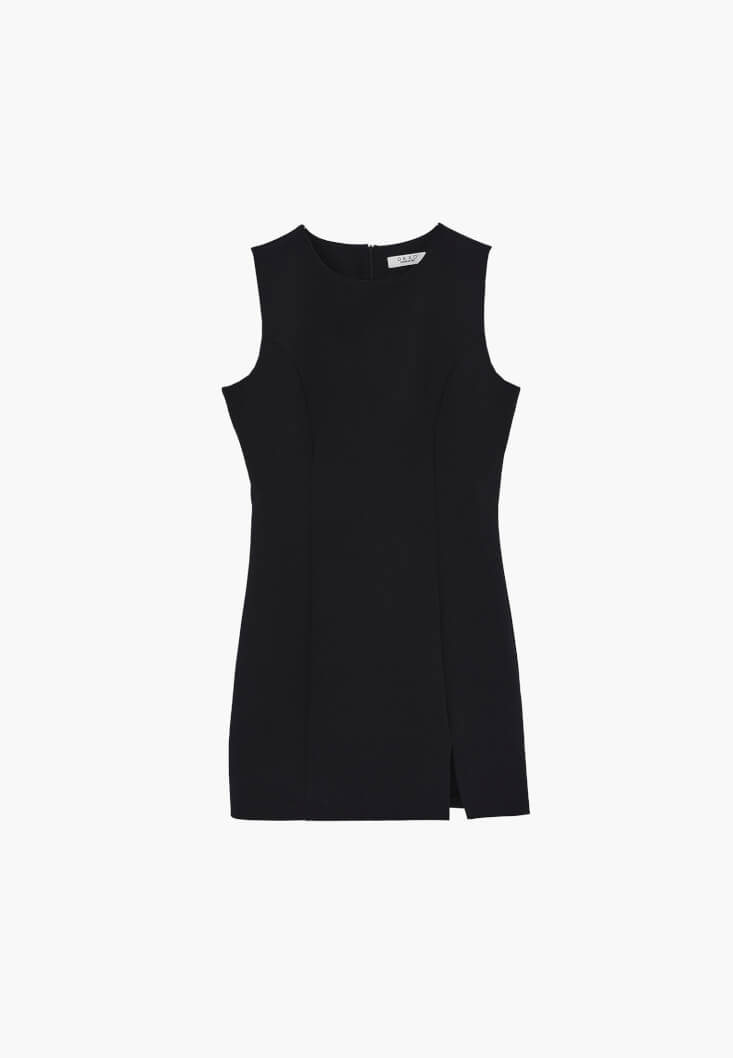Siyah Yırtmaçlı Mini Elbise