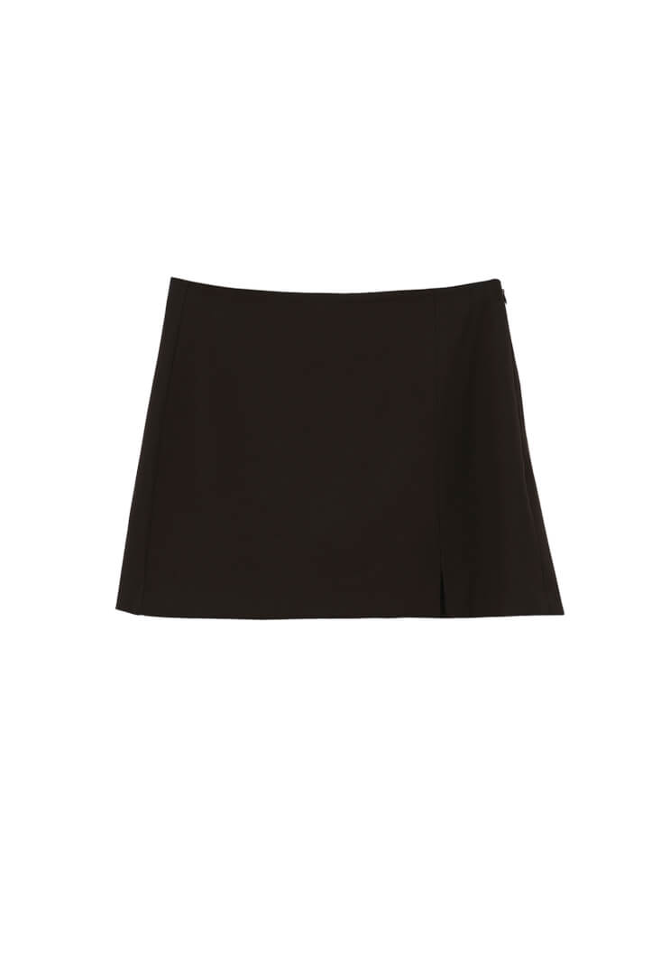 Kahverengi Yırtmaçlı Mini Şort Etek