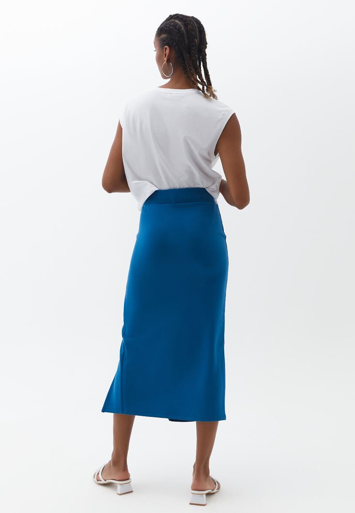 Lacivert Yırtmaçlı Sweat Midi Etek