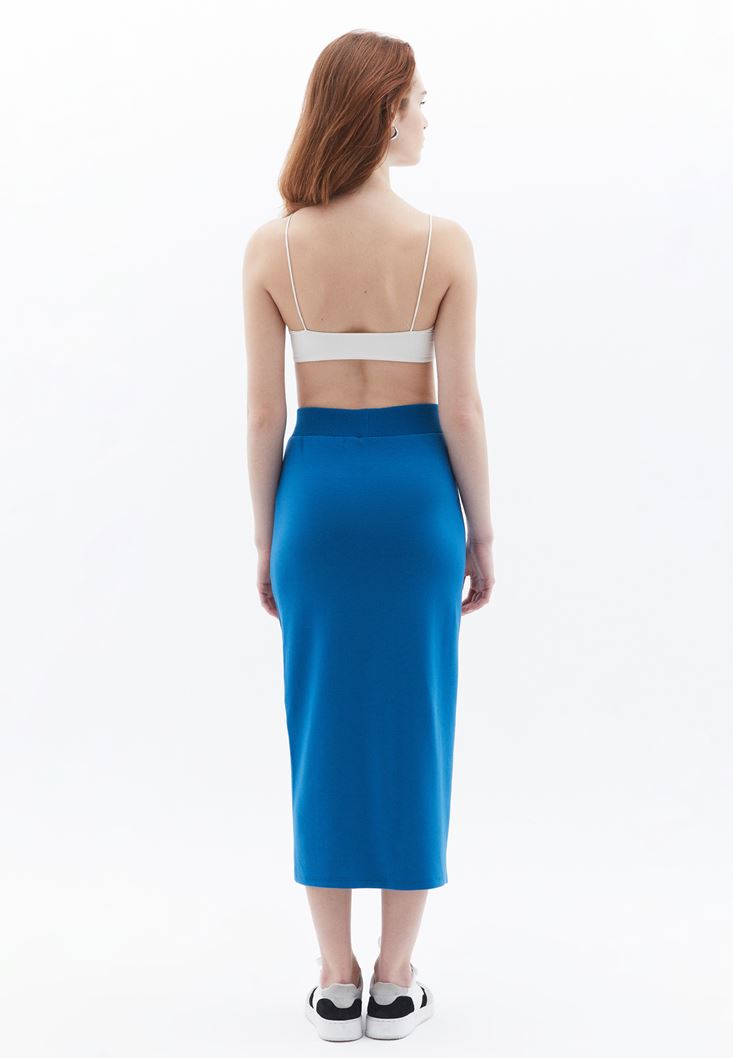 Lacivert Yırtmaçlı Sweat Midi Etek