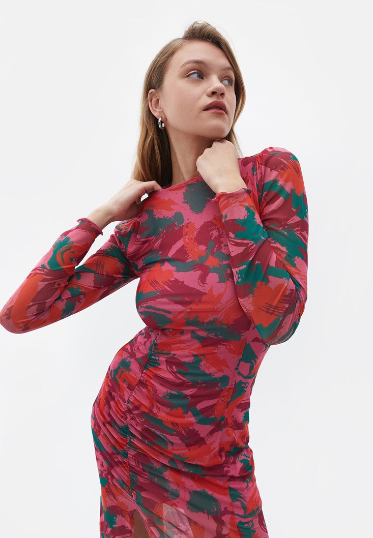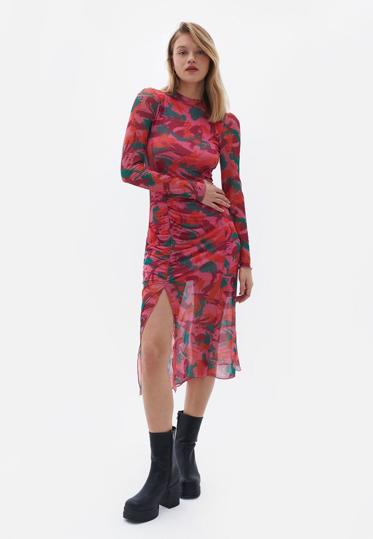 • Bayan Çok Renkli Yırtmaçlı Tül Elbise