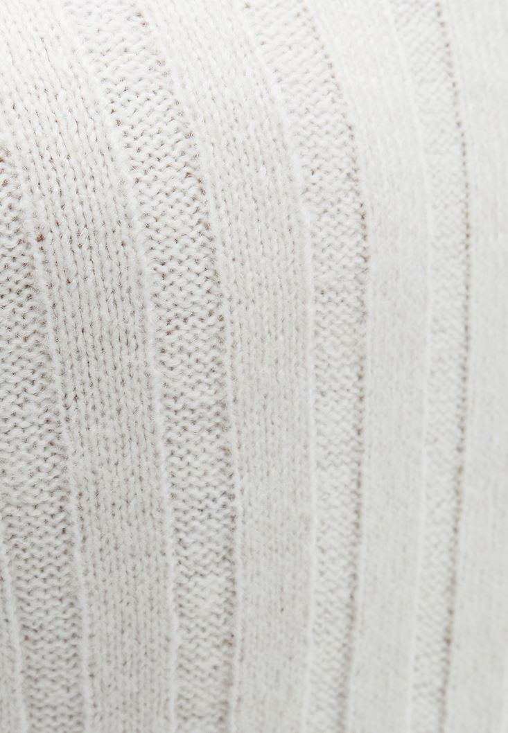• Bayan Krem Yırtmaçlı Uzun Triko Elbise