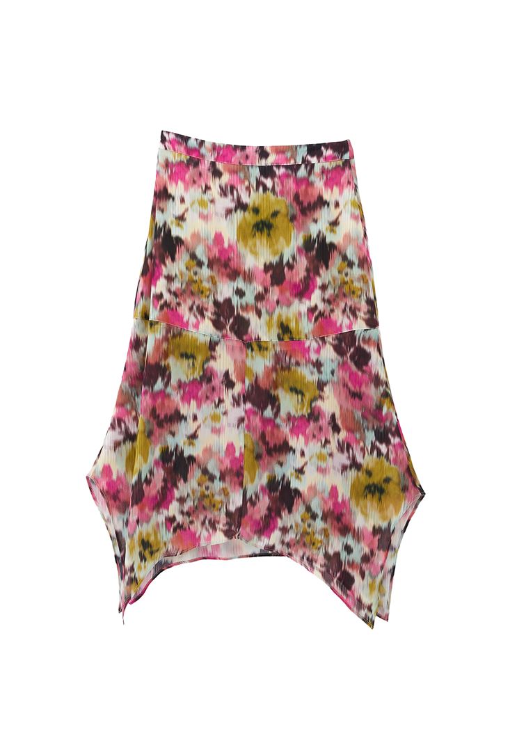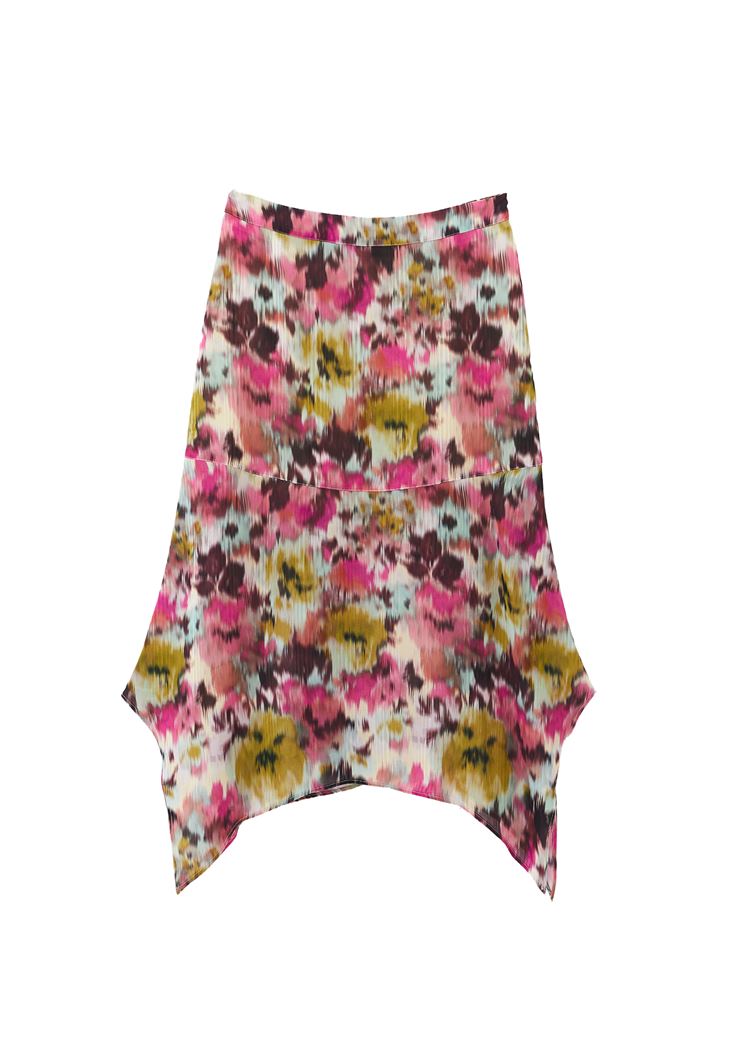 Çok Renkli Yüksek Bel Asimetrik Kesim Etek