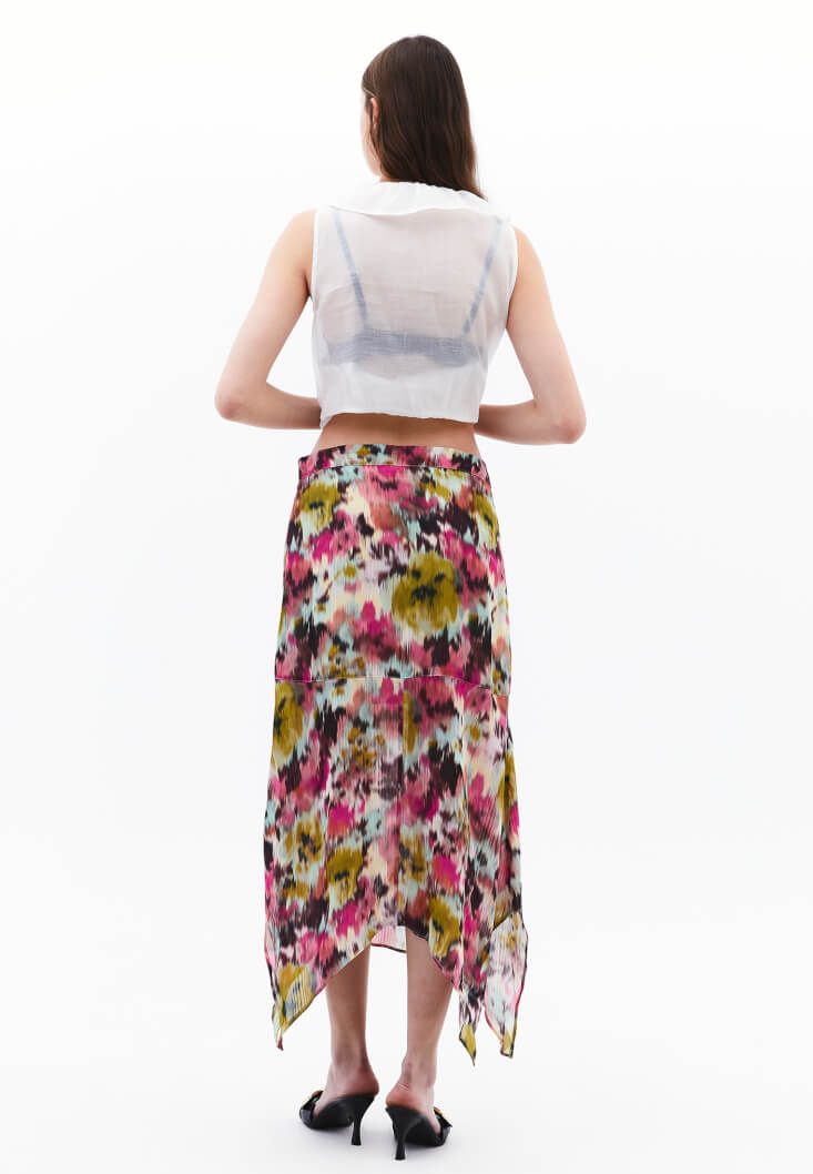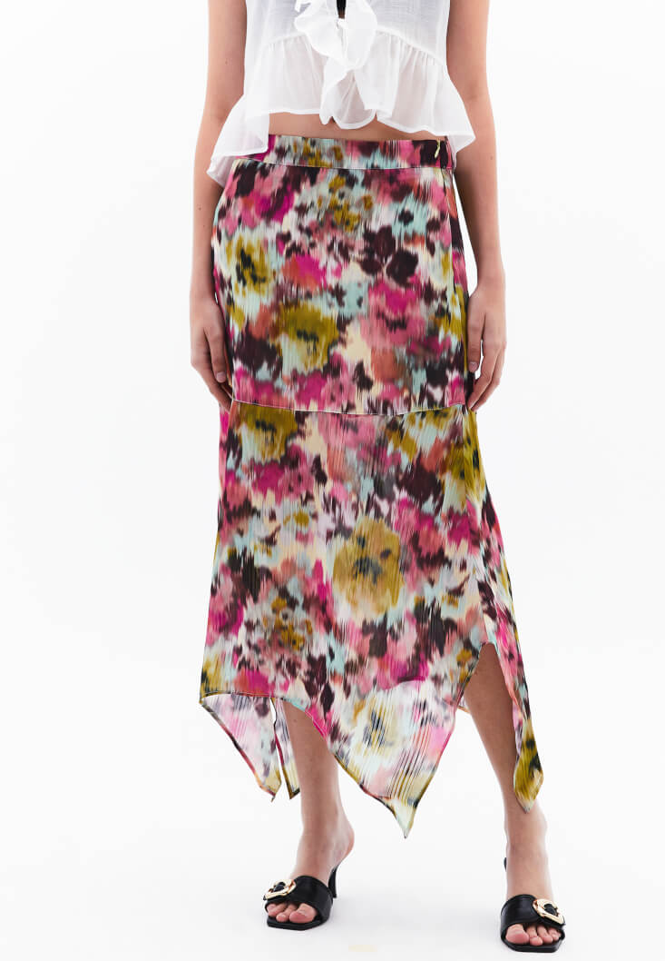 Çok Renkli Yüksek Bel Asimetrik Kesim Etek
