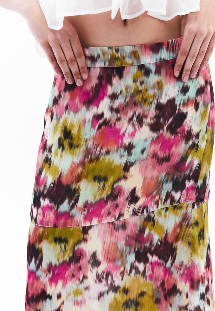 • Bayan Çok Renkli Yüksek Bel Asimetrik Kesim Etek
