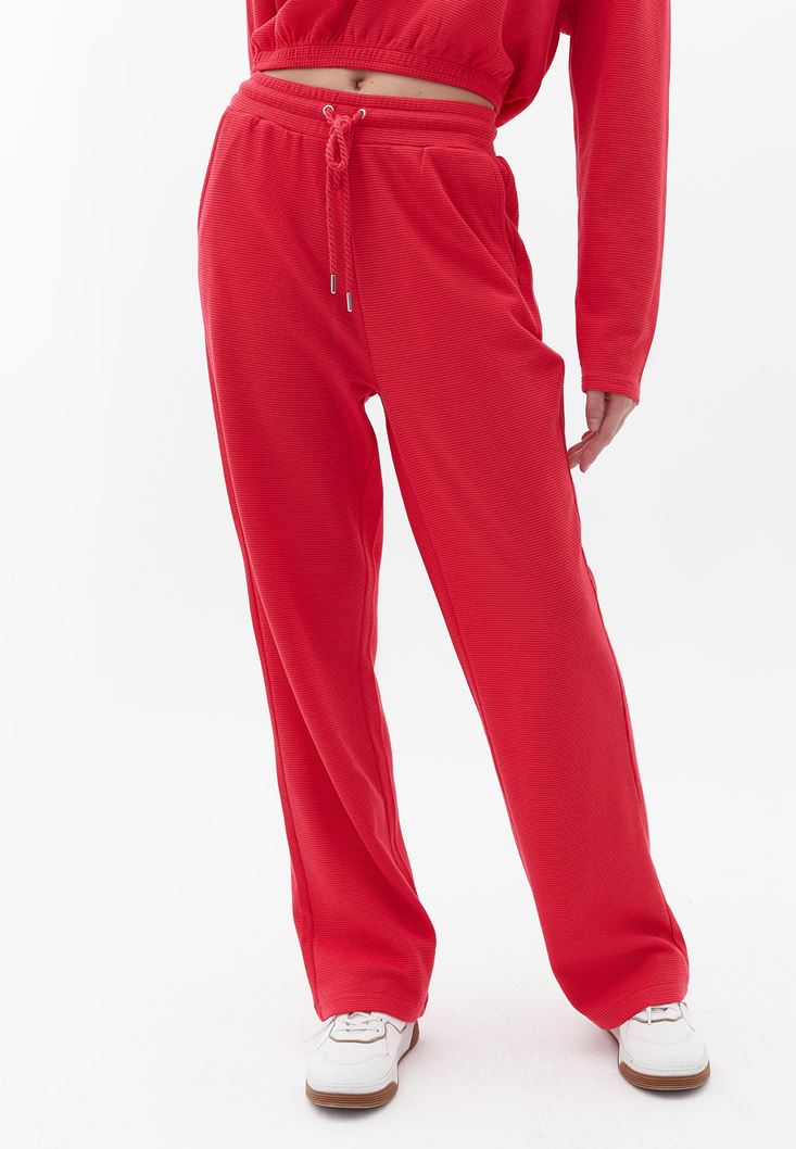 Pamuk karışımlı özel gofre doku, yüksek bel, bedenden uzak rahat fit, boru paça, beli lastikli ve bağcıklı, ön kısmı iki cepli.