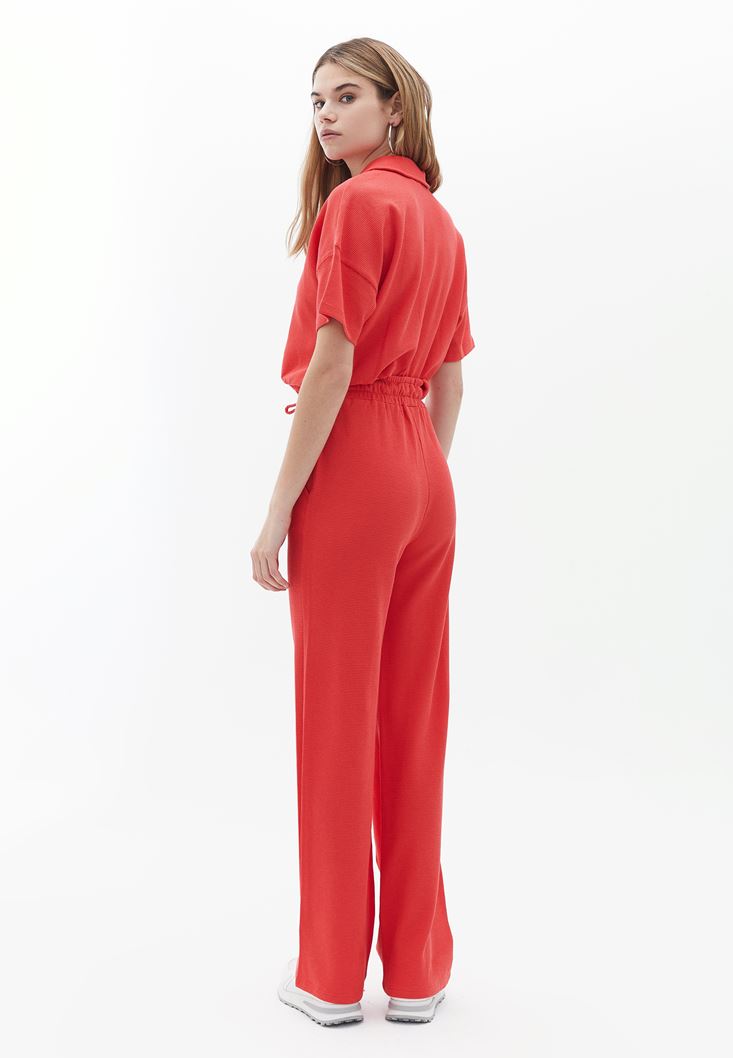 Kırmızı Yüksek Bel Bağcıklı Pantolon