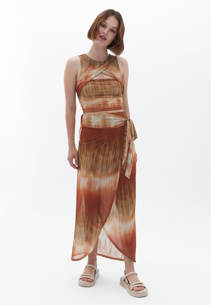 • Bayan Çok Renkli Yüksek Bel Bağlama Detaylı Tül Etek