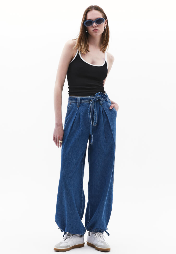 • Bayan Mavi Yüksek Bel Balon Pantolon