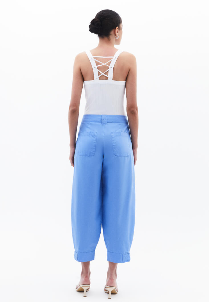 Mavi Yüksek Bel Barrel-Fit Pantolon