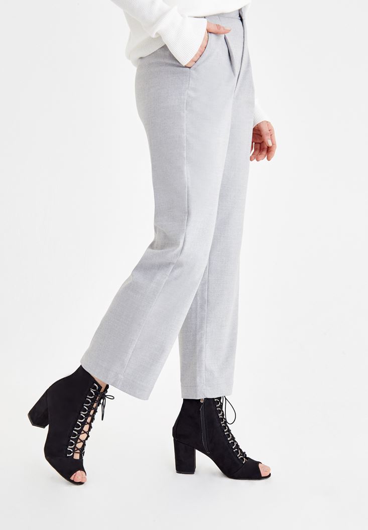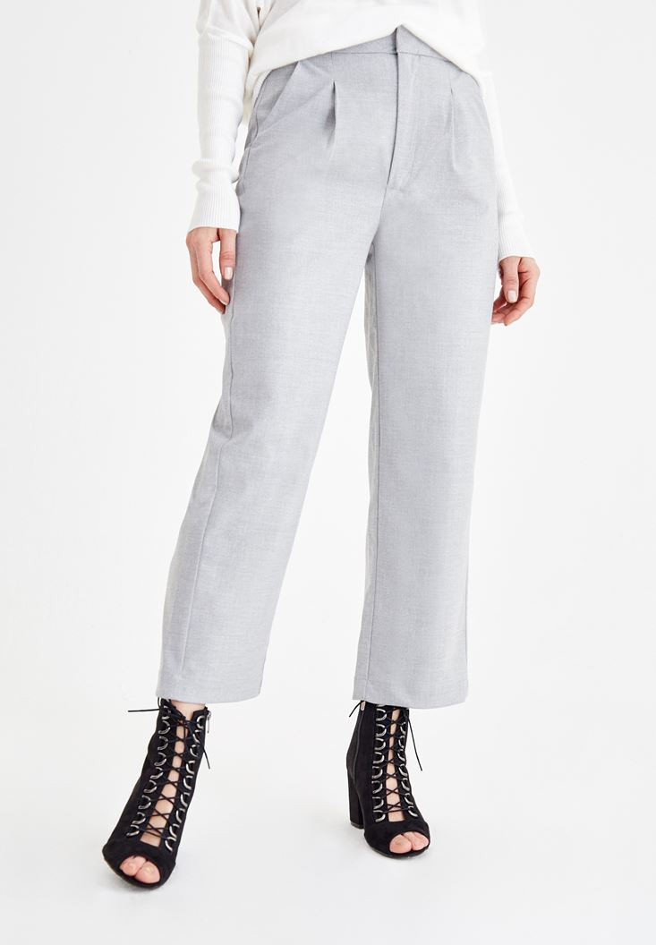 • Bayan Gri Yüksek Bel Bol Paça Pantolon
