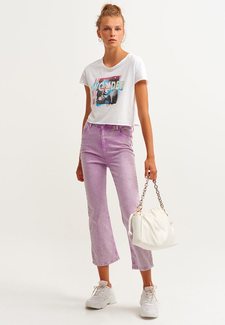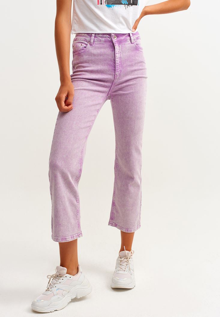 • Bayan Mor Yüksek Bel Bol Paça Pantolon