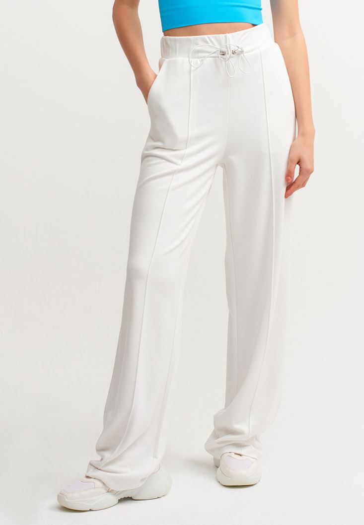 • Bayan Krem Yüksek Bel Bol Paça Pantolon