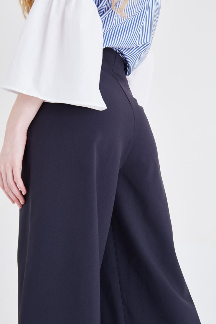 • Bayan Lacivert Yüksek Bel Bol Pantolon