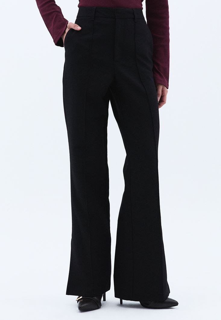 Siyah Yüksek Bel Bootcut Pantolon