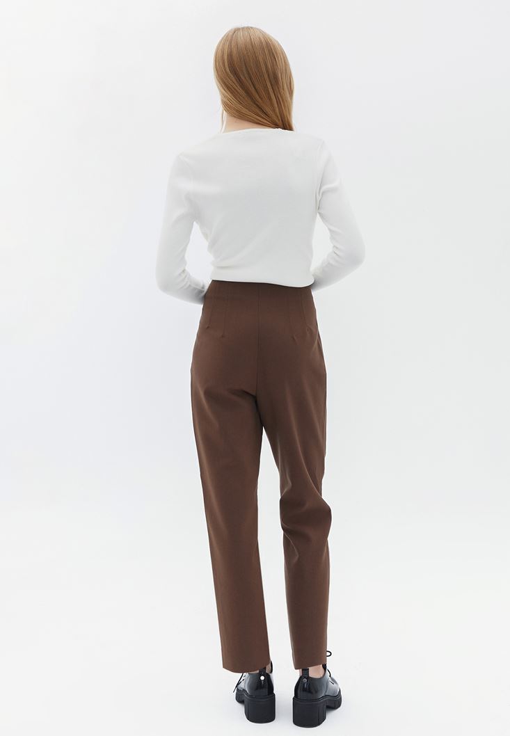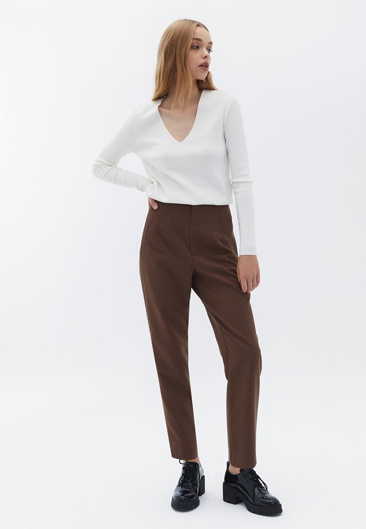 • Bayan Kahverengi Yüksek Bel Carrot-Fit Pantolon