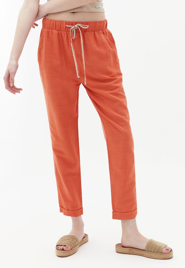 Turuncu Yüksek Bel Carrot-Fit Pantolon
