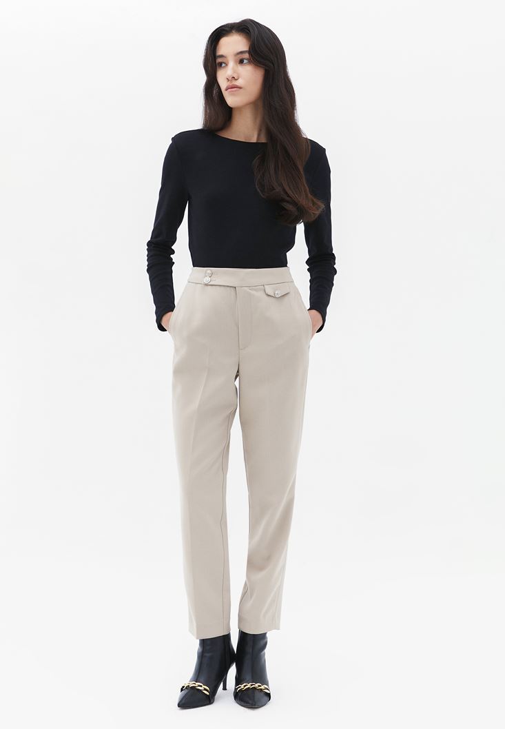 • Bayan Bej Yüksek Bel Carrot-Fit Pantolon
