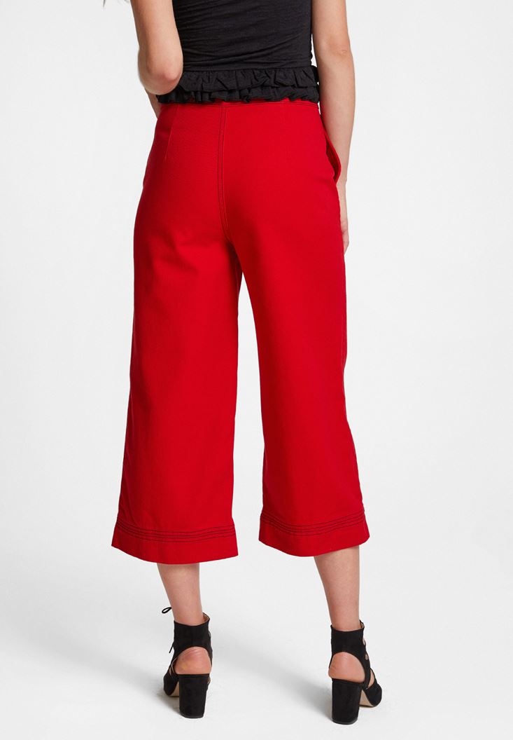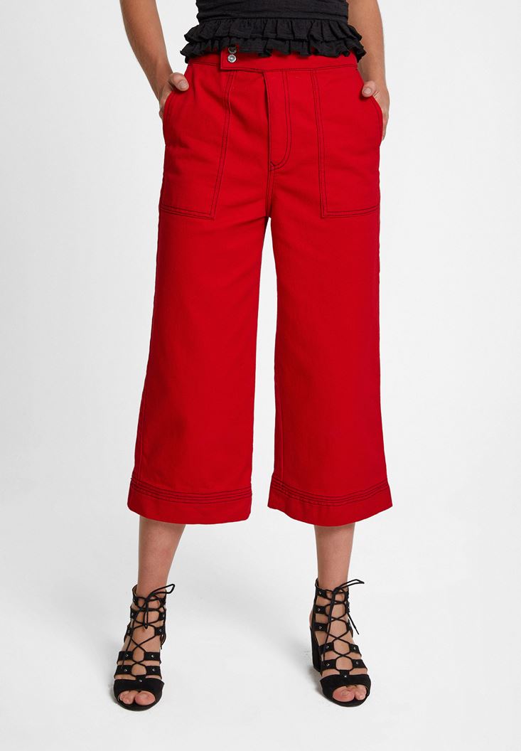 • Bayan Kırmızı Yüksek Bel Cep Detaylı Bol Pantolon