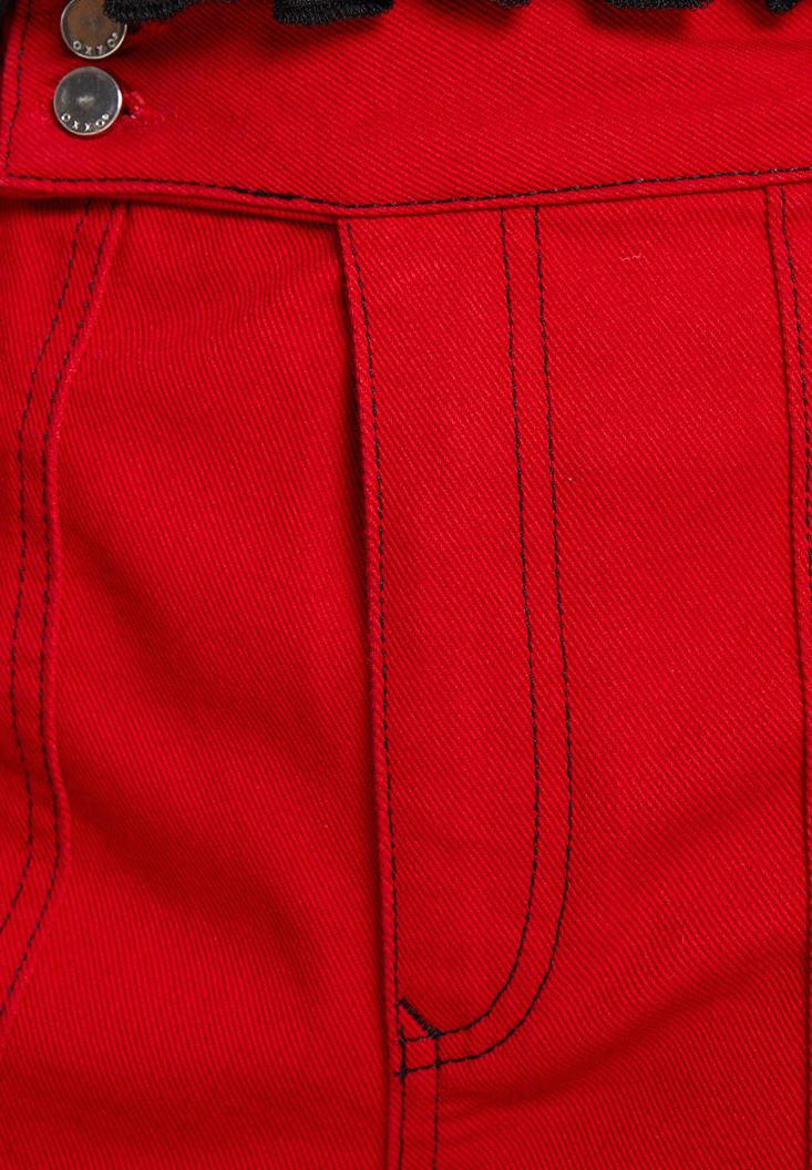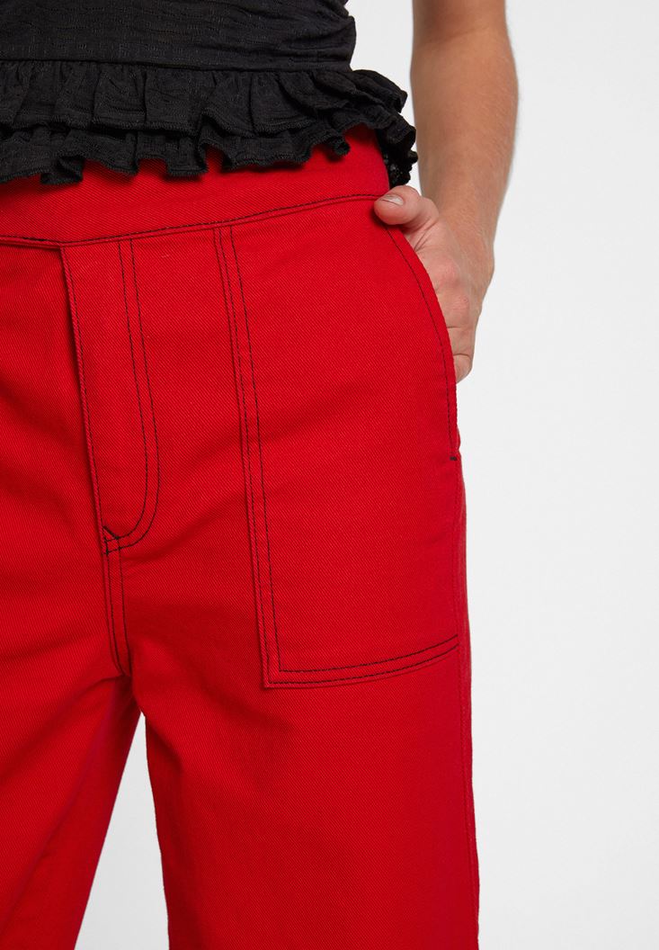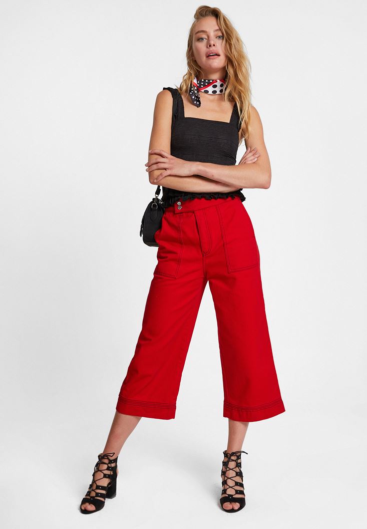 Kırmızı Yüksek Bel Cep Detaylı Bol Pantolon