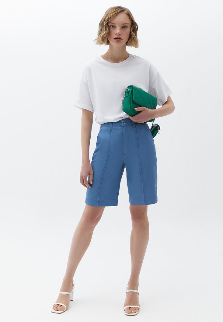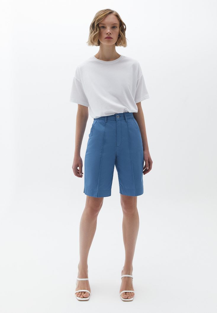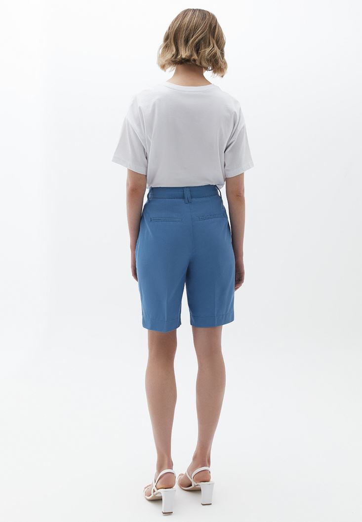 Mavi Yüksek Bel Cepli Şort ( TENCEL™ )