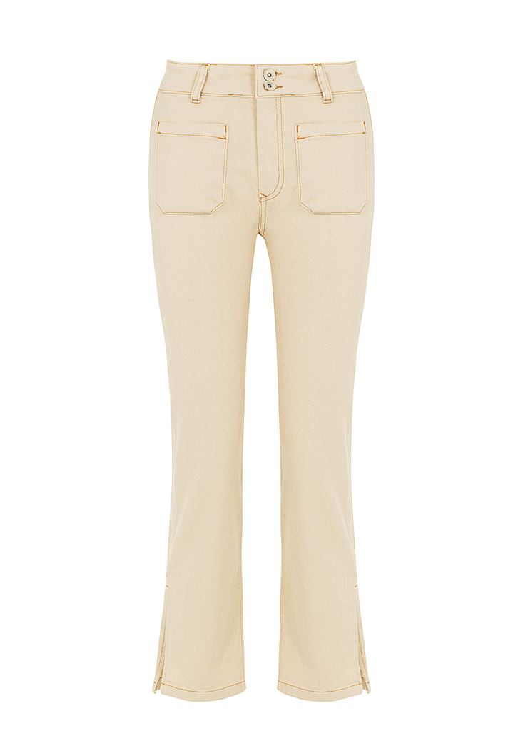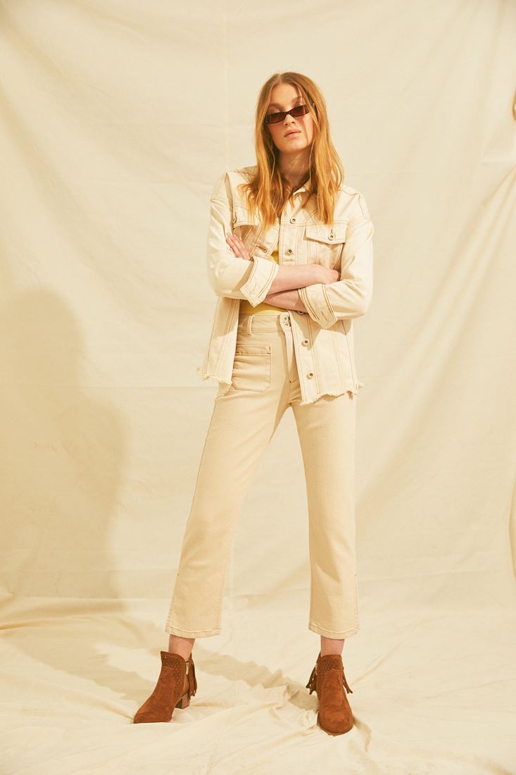 • Bayan Krem Yüksek Bel Crop Straight Jean