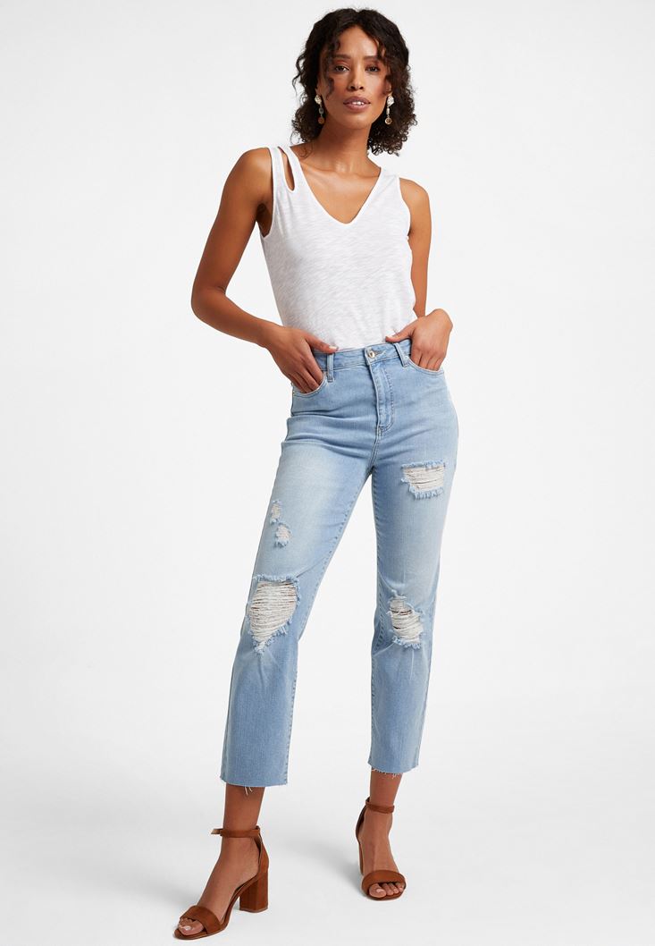 Yüksek Bel Pantolon modeli, pamuk içerikli mükemmel dokusu ve rahat kalıbı ile yeni sezonda sizlerle buluşuyor. Boru paça pantolon modeli, yüksek bel konforuyla ve kesik paça detayıyla Oxxo'da karşınıza çıkıyor. Yüksek bel pantolon modelinin diz kısmındaki yırtıklar ve dokusundaki yıkamalı görünüm fazlasıyla dikkat çekiyor. Salaş gömleklerle ve kazaklarla severek kullanabileceğiniz boru paça pantolon modelini, günlük kombinlerinize ekleyebilirsiniz. Yüksek bel pantolon modeli ile topuklu ayakkabılar veya yüksek tabanlı sneakerlar tercih ederek bacak boyunuzu uzun gösterebilirsiniz. Oxxo'nun her sezon dikkat çeken detaylarla ve benzersiz dokularla sizlere sunduğu boru paça pantolon modelleri ile tarzınızı ön plana çıkarabilirsiniz.