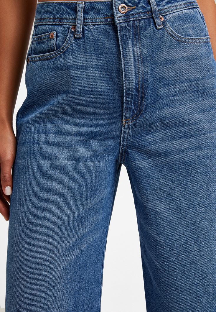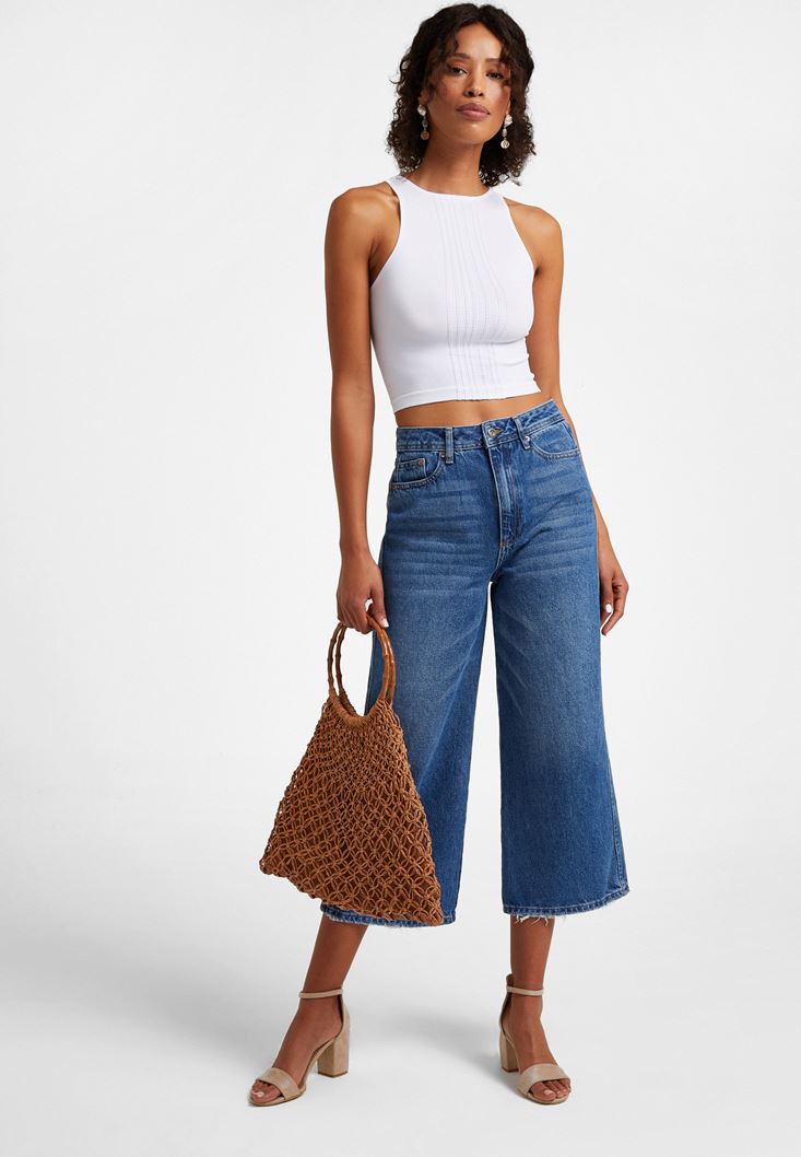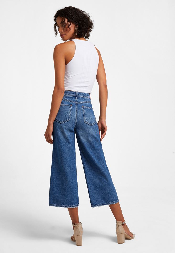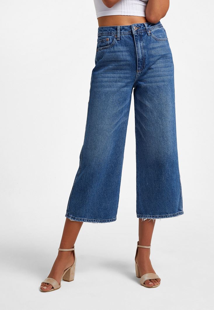 Mavi Yüksek Bel Culotte Denim Pantolon