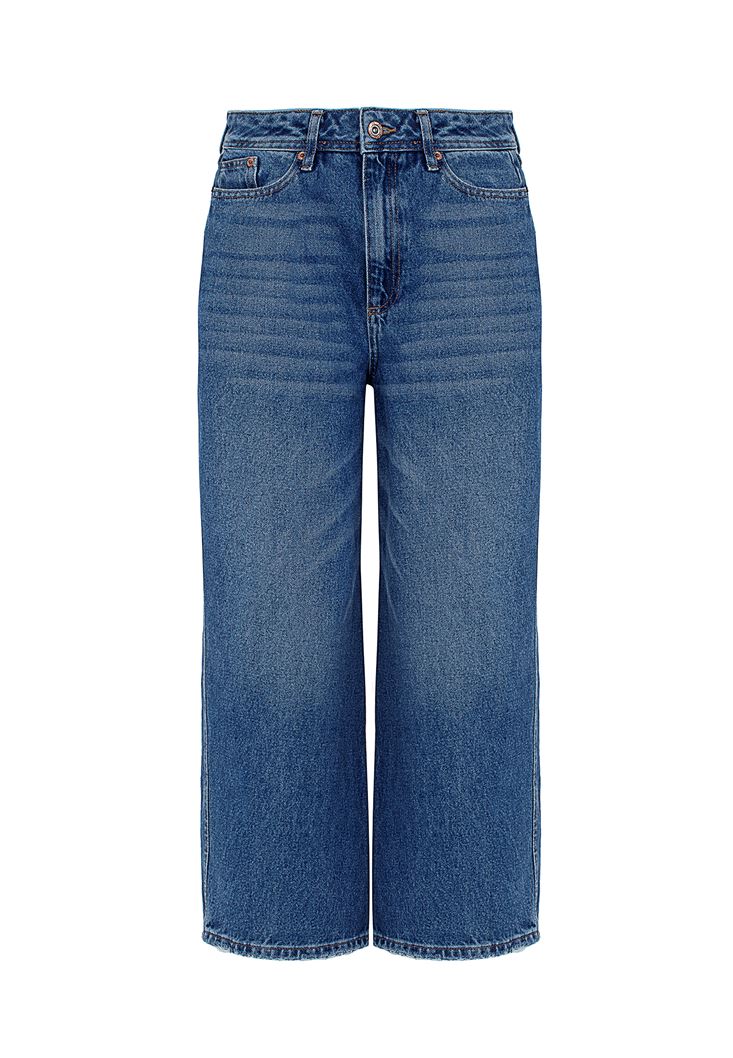 • Bayan Mavi Yüksek Bel Culotte Denim Pantolon