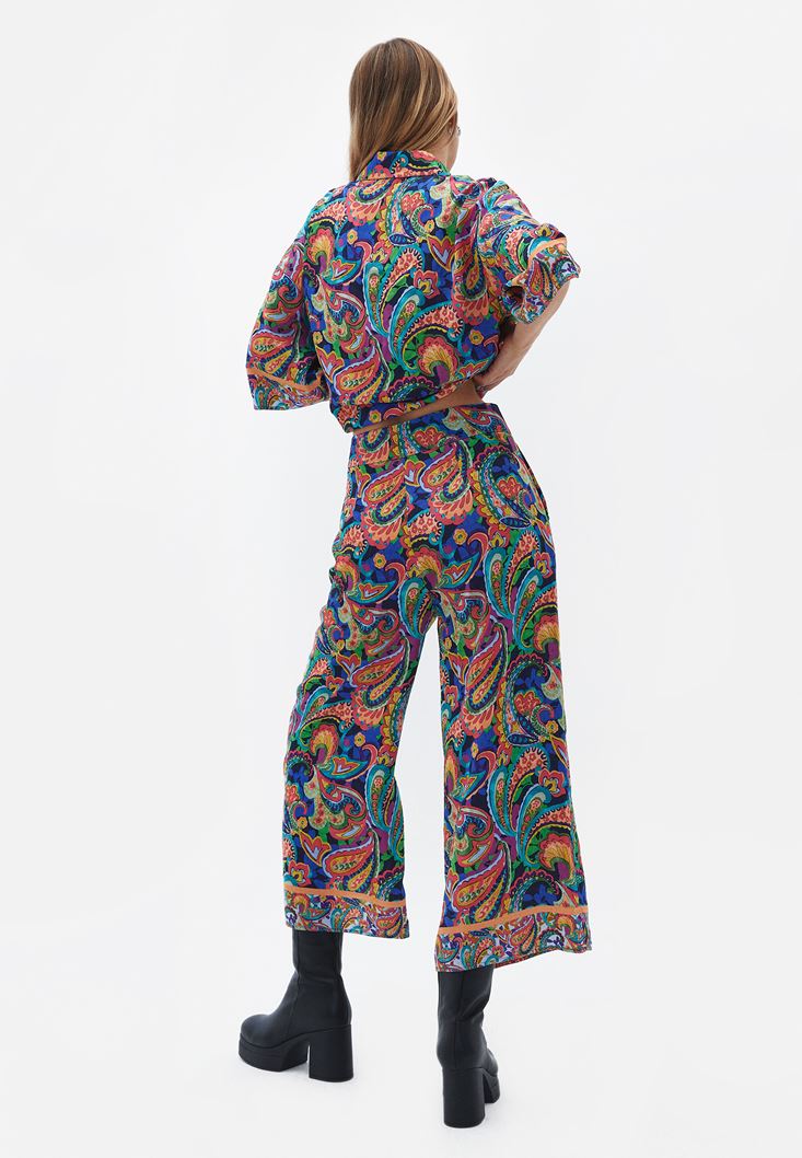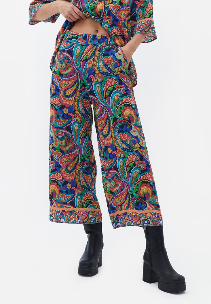 Çok Renkli Yüksek Bel Culotte Pantolon