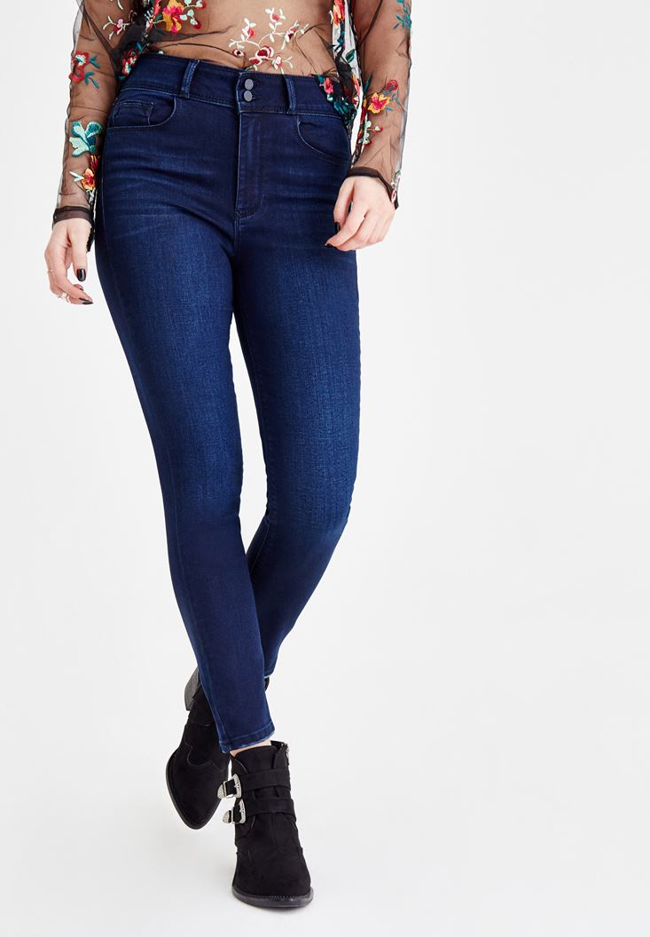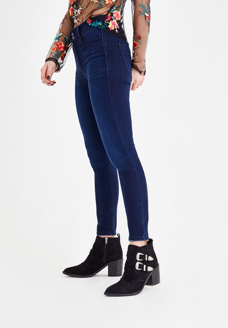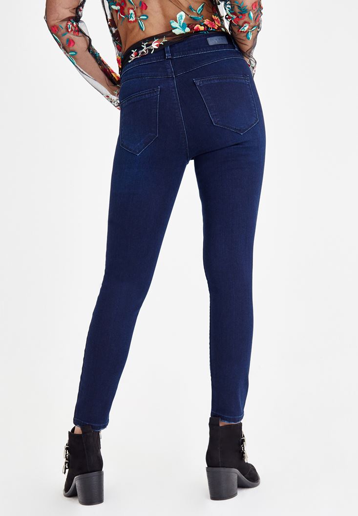 • Bayan Mavi Yüksek Bel Dar Paça Çift Düğme Detaylı Pantolon