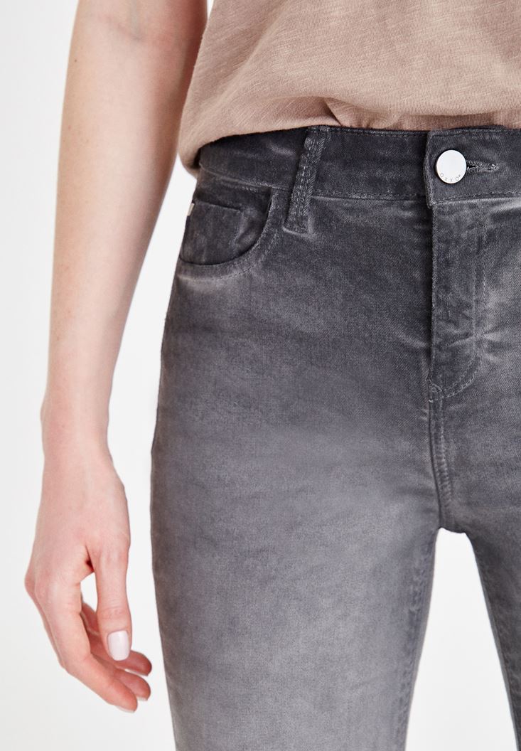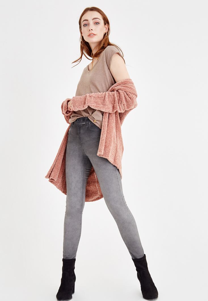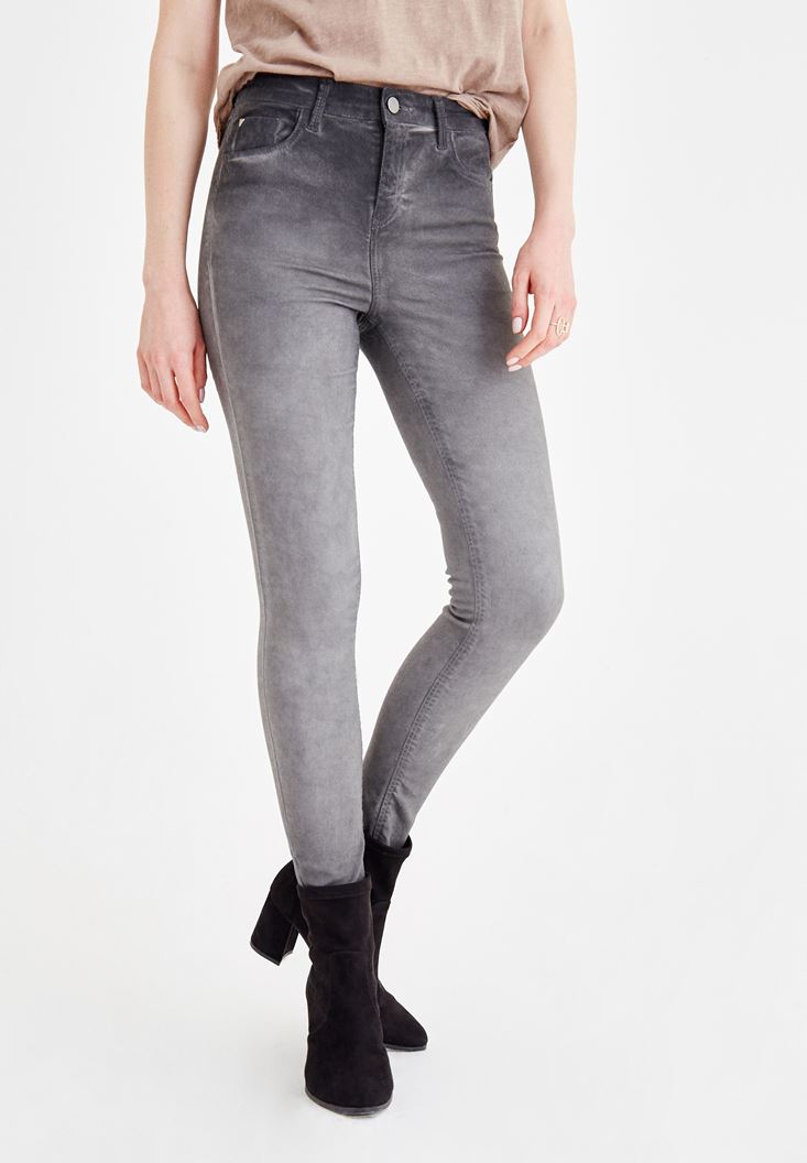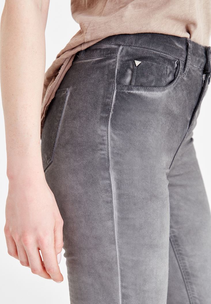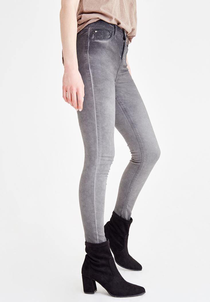 Gri Yüksek Bel Dar Paça Denim Pantolon