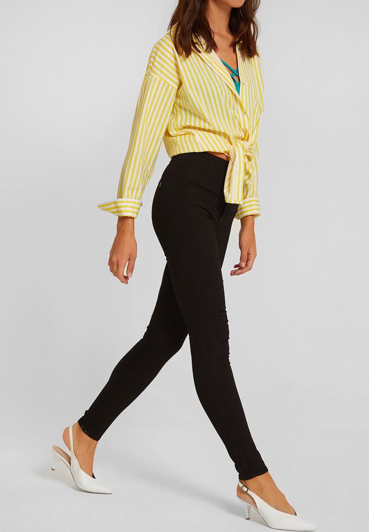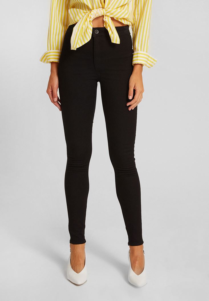 • Bayan Siyah Yüksek Bel Dar Paça Pamuk Pantolon