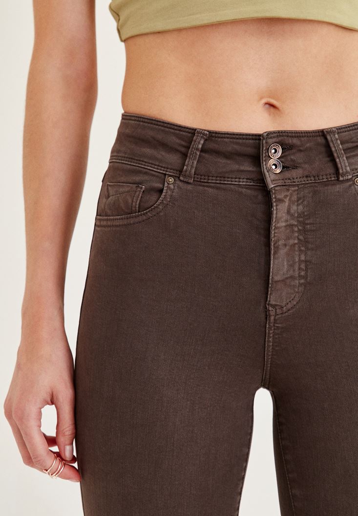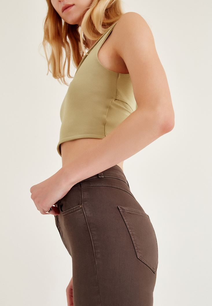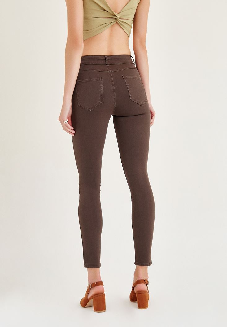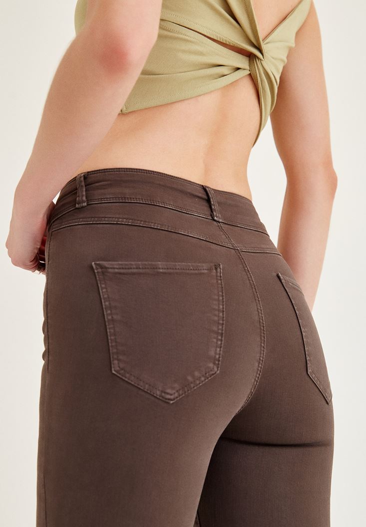Kahverengi Yüksek Bel Dar Paça Skinny Pantolon