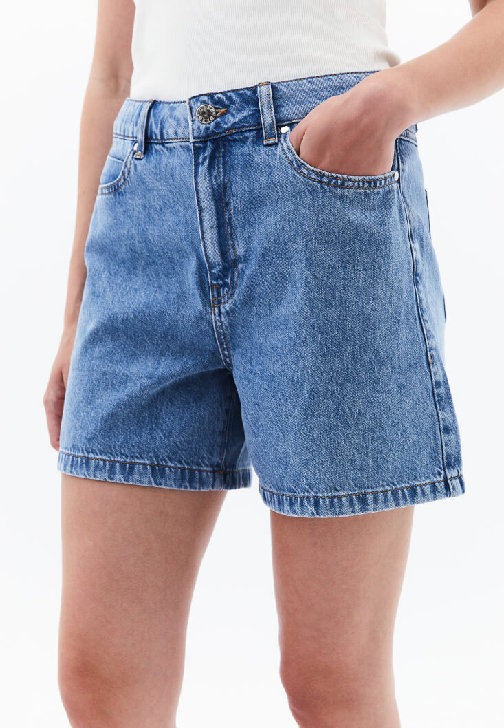 Mavi Yüksek Bel Denim Şort ( TENCEL™ )
