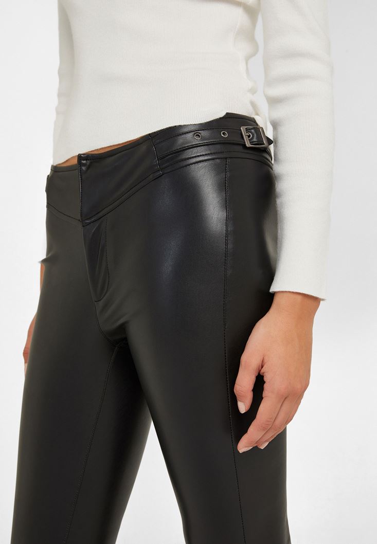 • Bayan Siyah Yüksek Bel Deri Pantolon