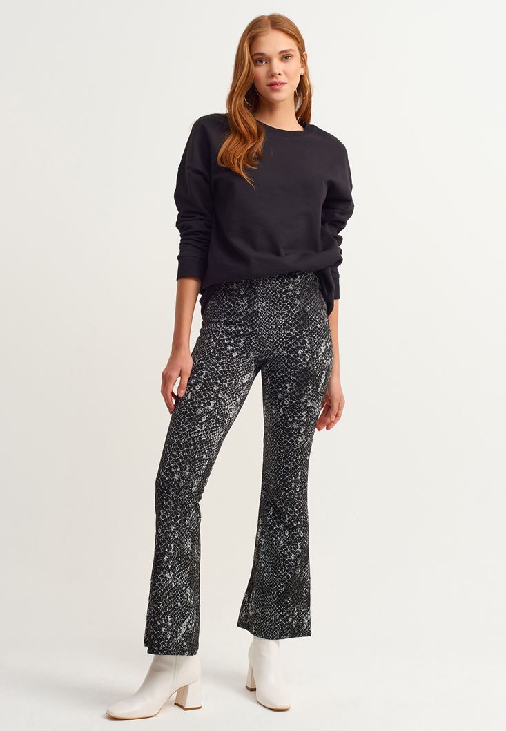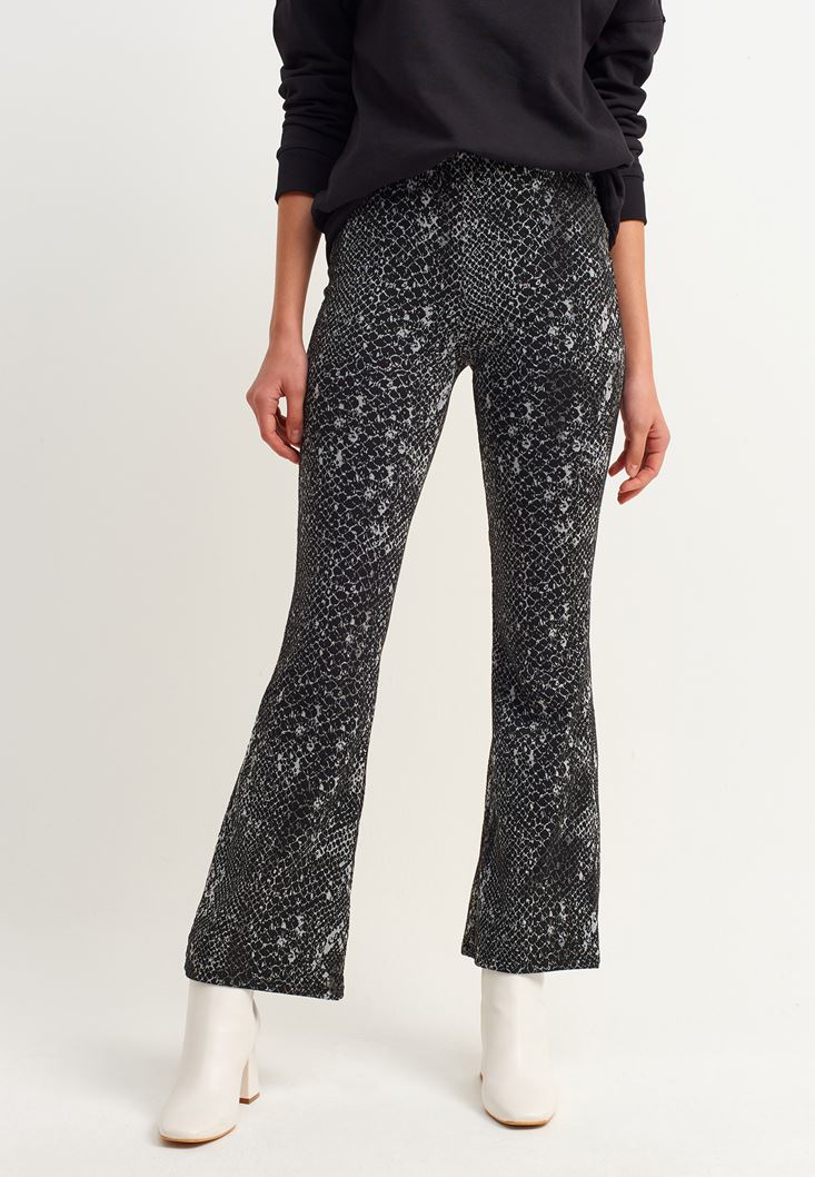 Batik formlu snake deseni, flare paça ve yüksek bel, ekstra esnek ve rahat doku.