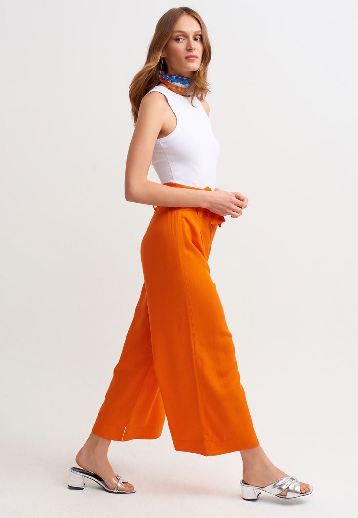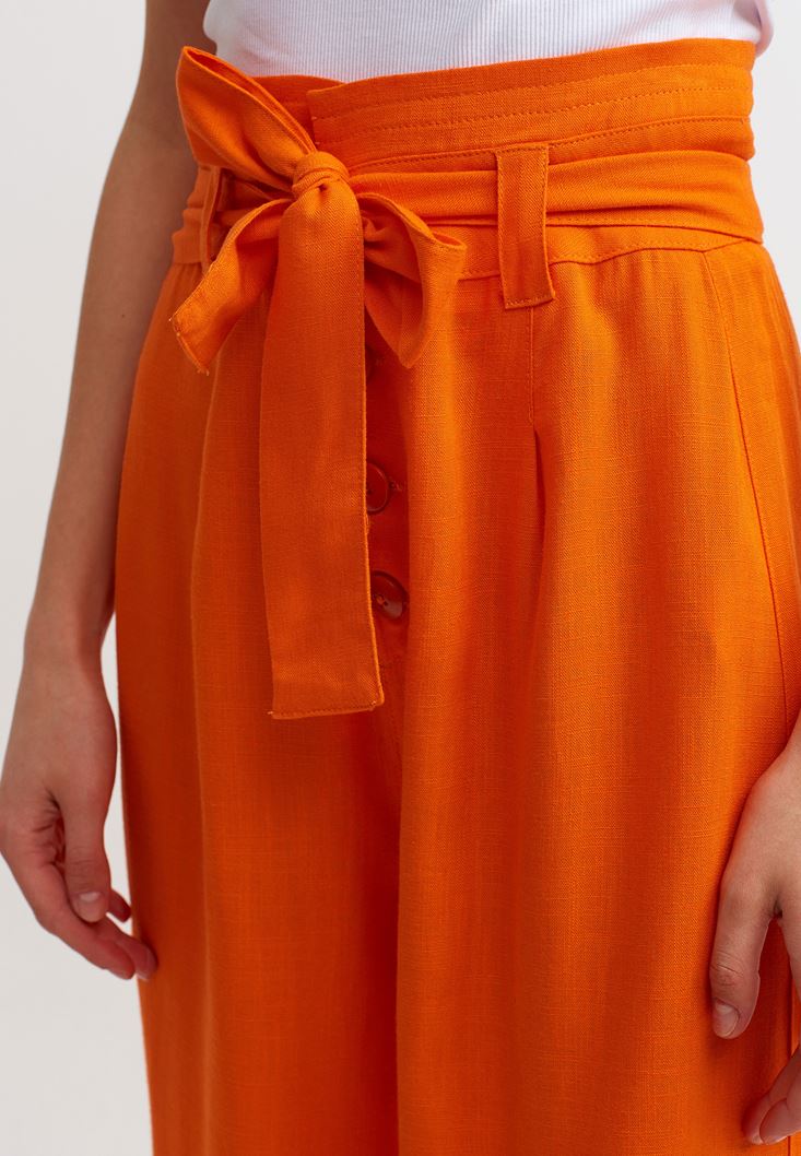Turuncu Yüksek Bel Düğme Detaylı Bol Pantolon
