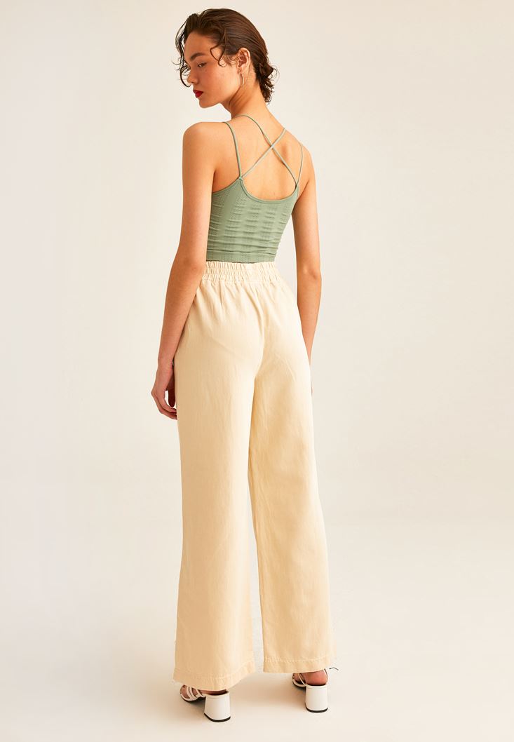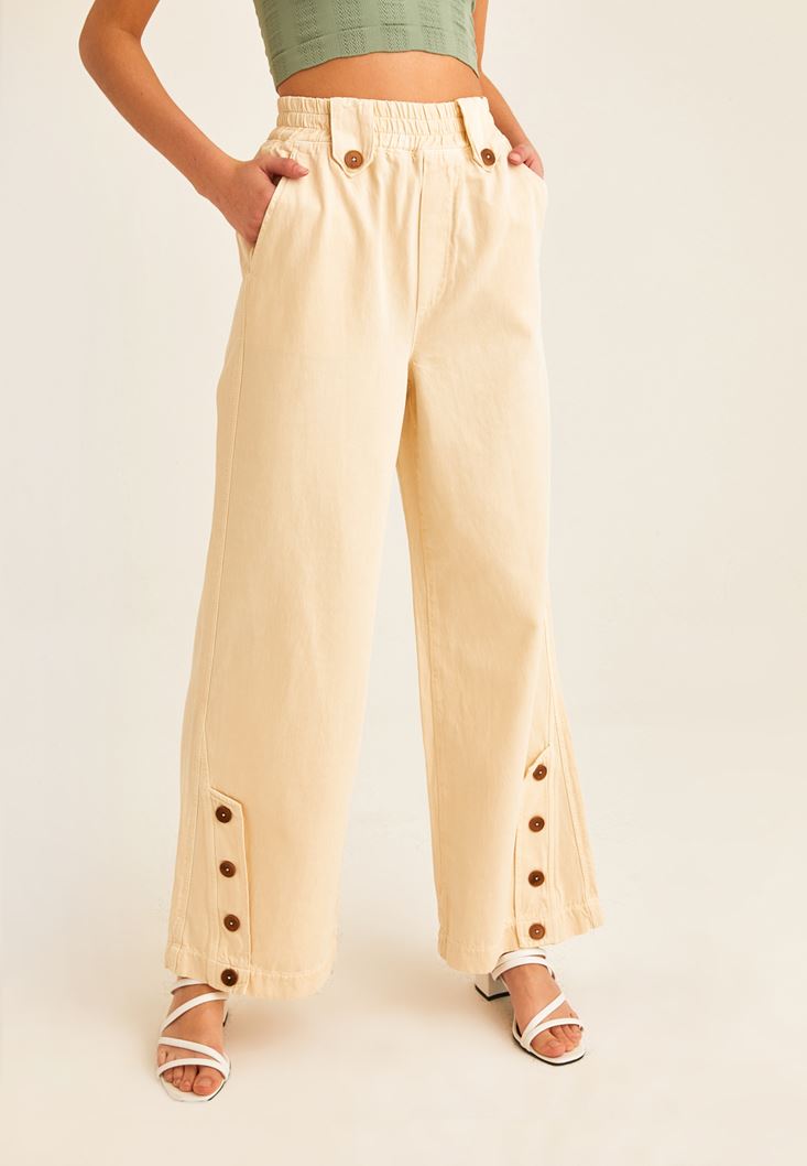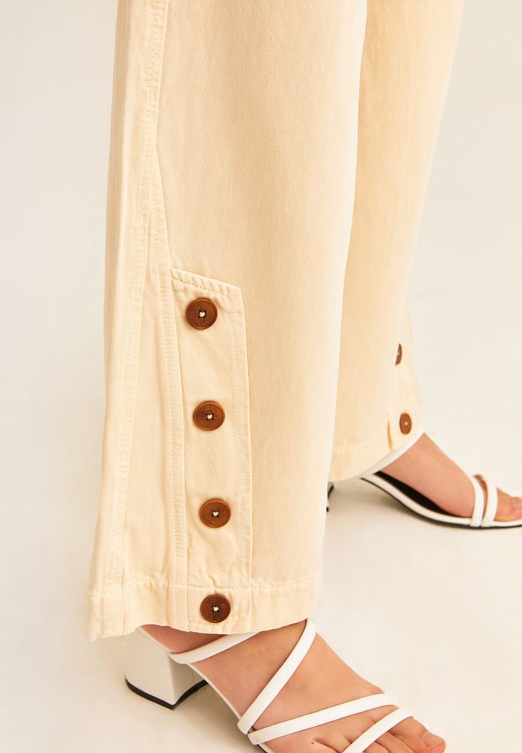 Bej Yüksek Bel Düğme Detaylı Bol Pantolon ( TENCEL™ )