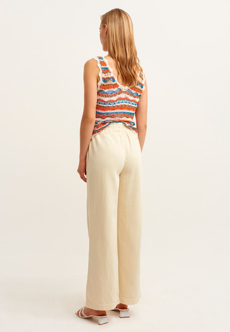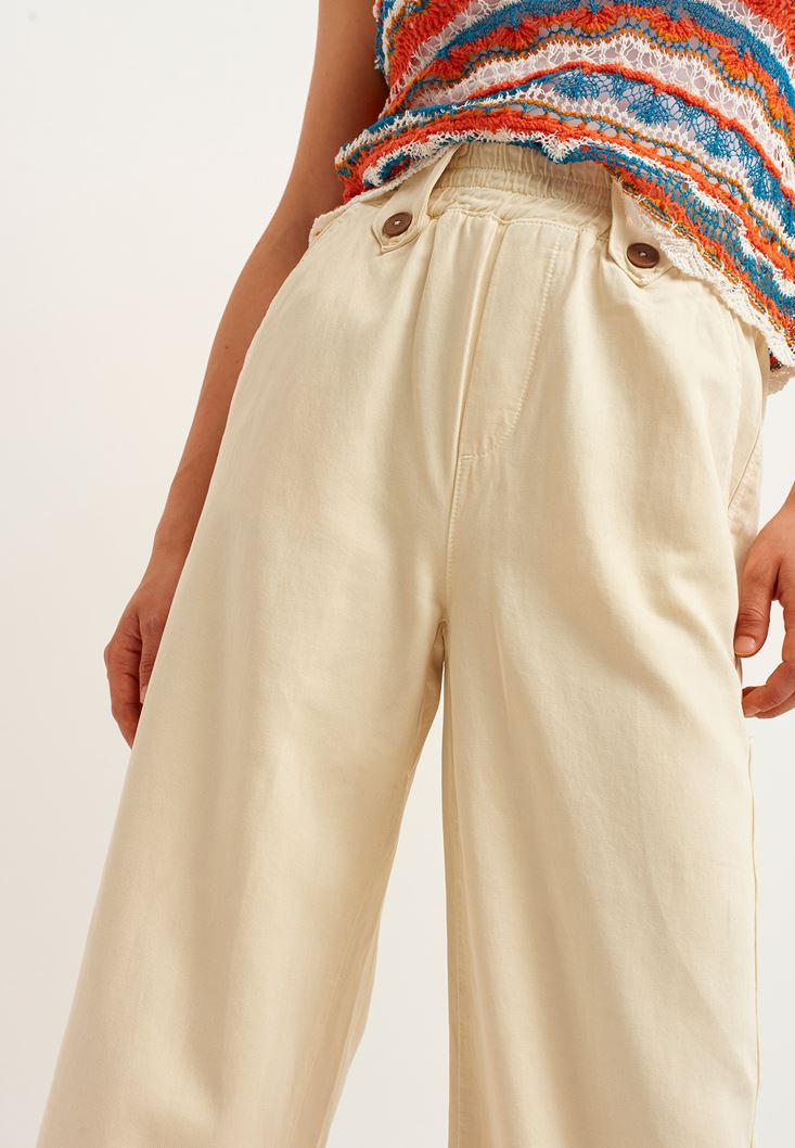 Bej Yüksek Bel Düğme Detaylı Bol Pantolon ( TENCEL™ )