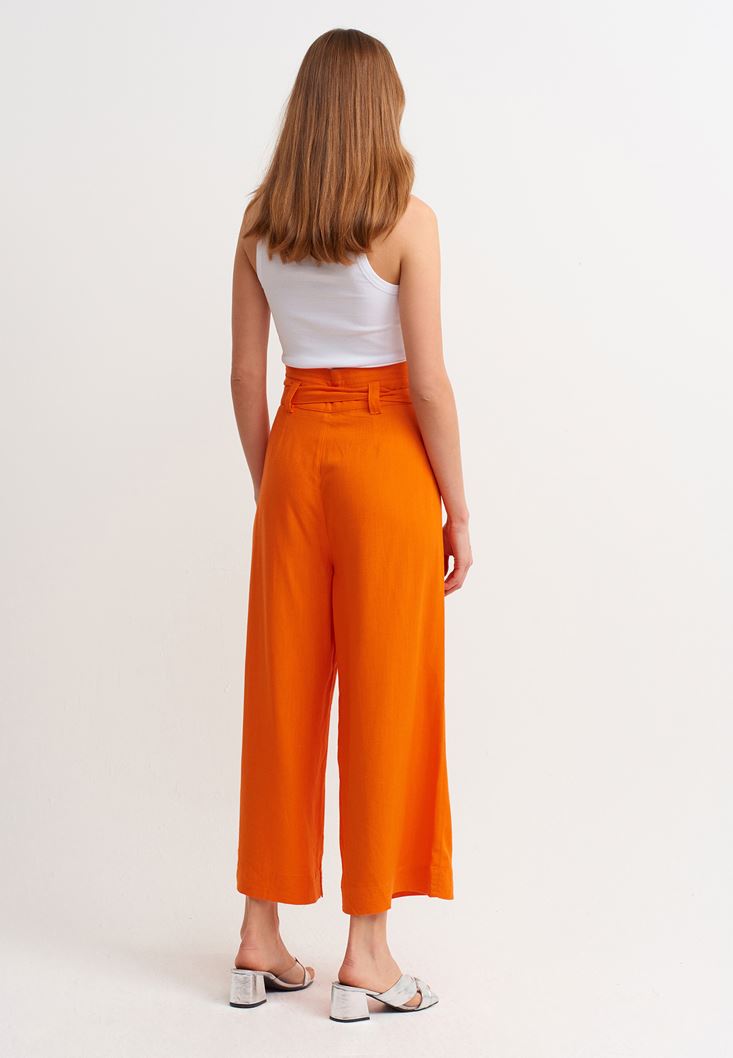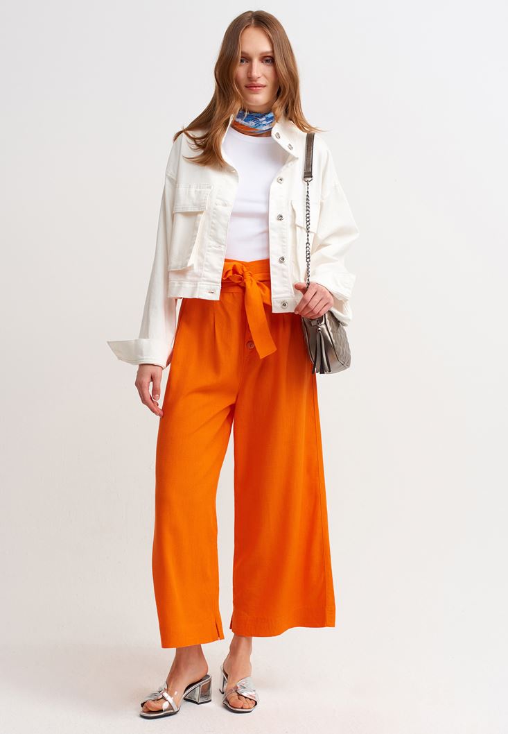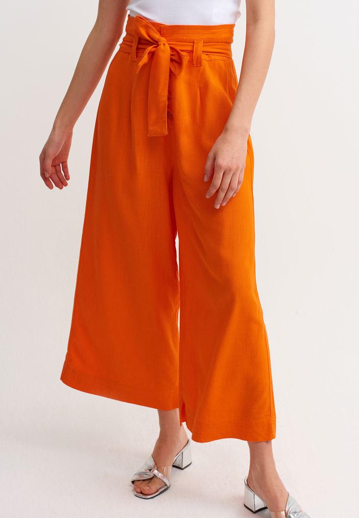 Turuncu Yüksek Bel Düğme Detaylı Bol Pantolon