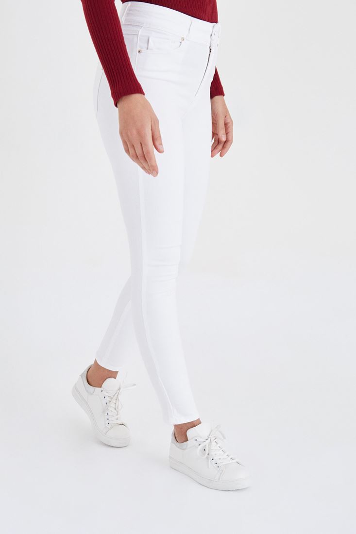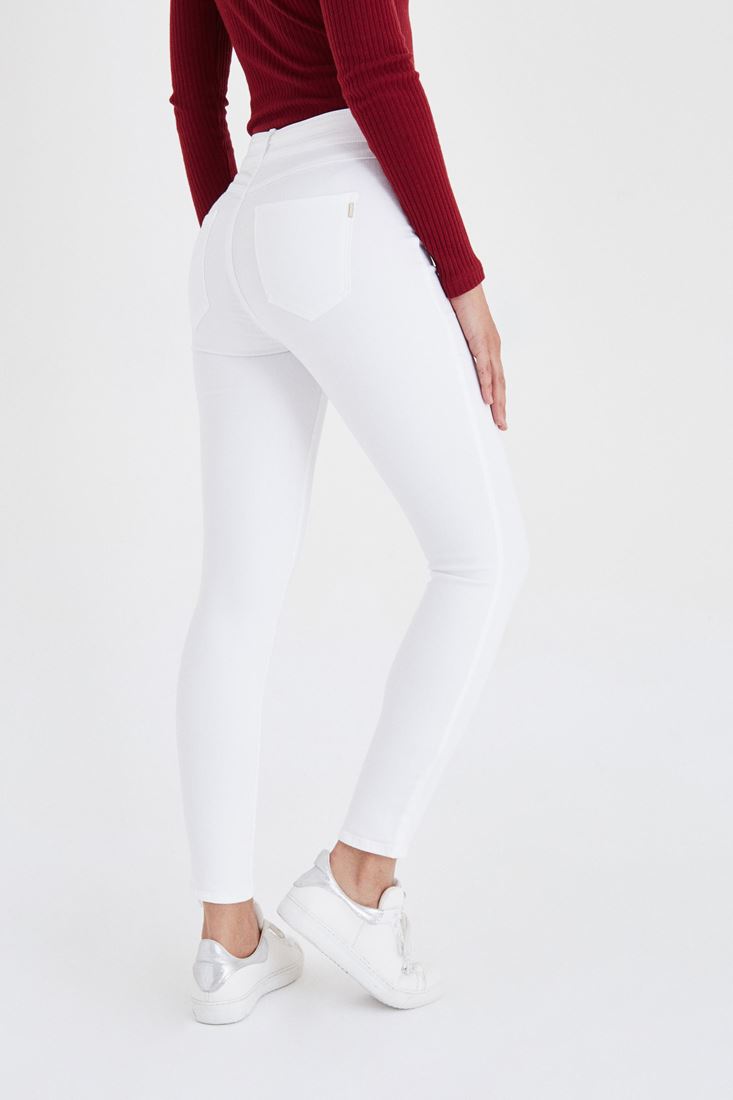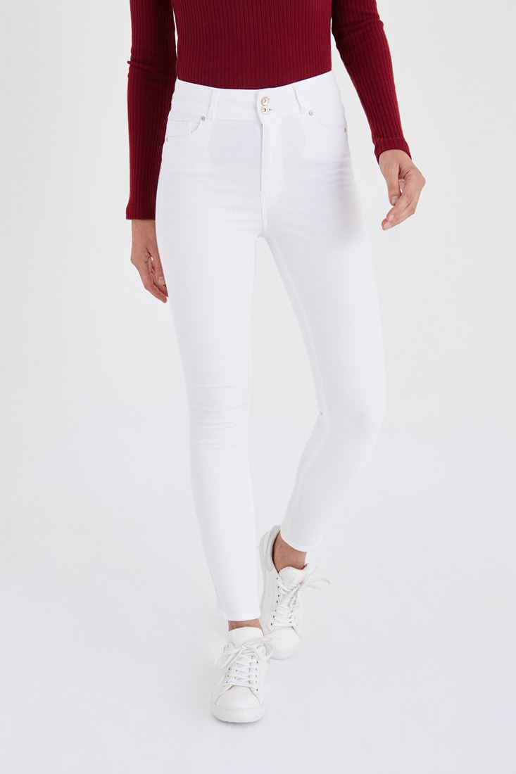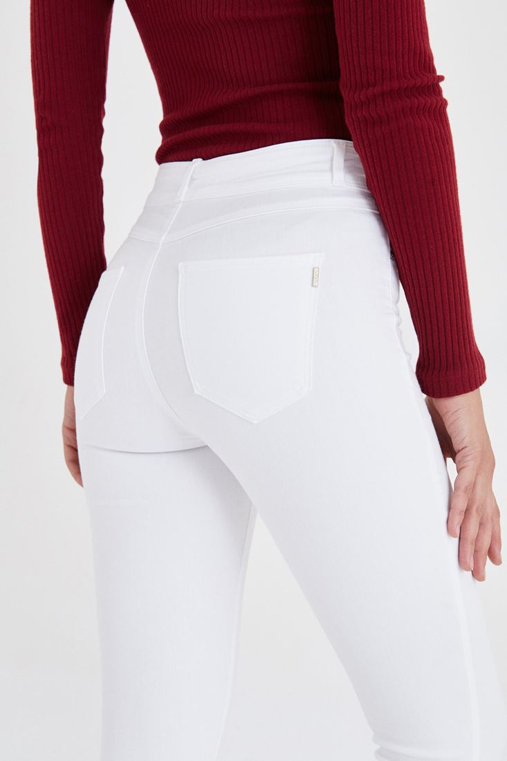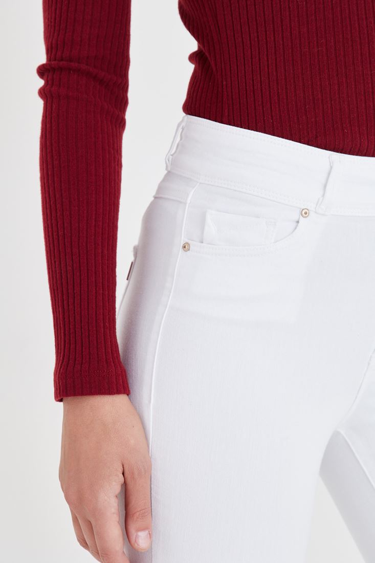• Bayan Beyaz Yüksek Bel Esnek Pantolon