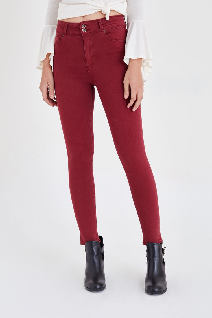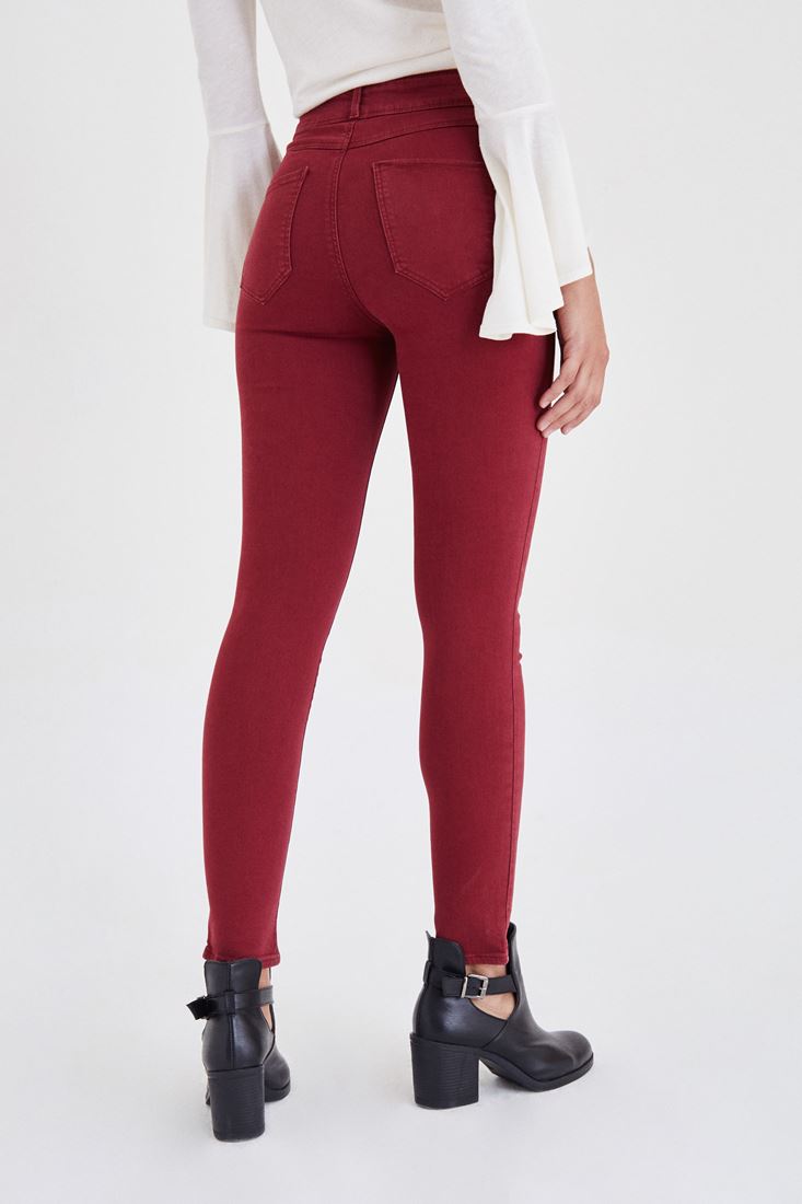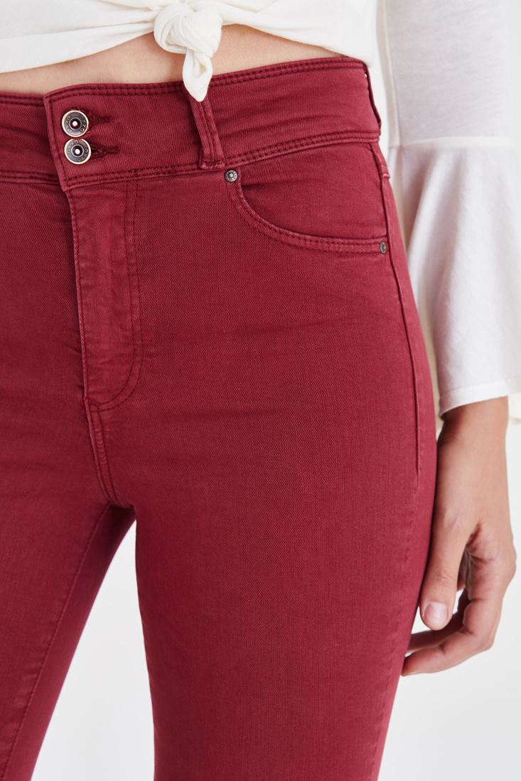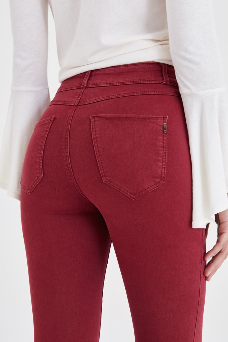 • Bayan Bordo Yüksek Bel Esnek Pantolon