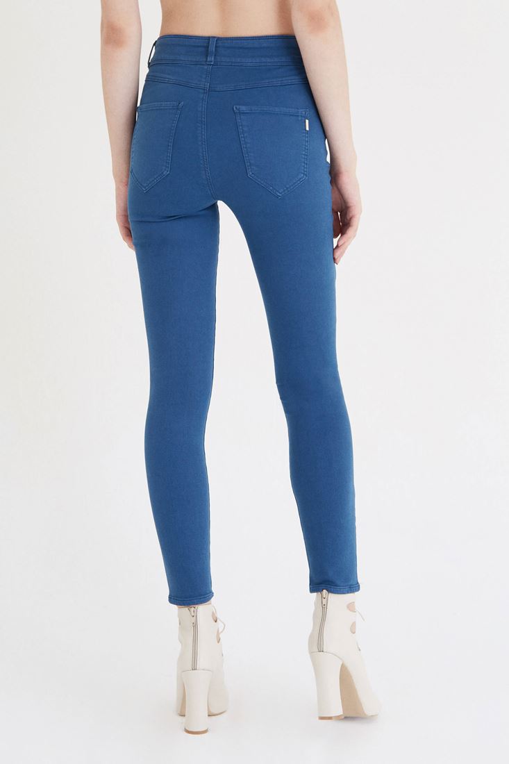 • Bayan Mavi Yüksek Bel Esnek Pantolon