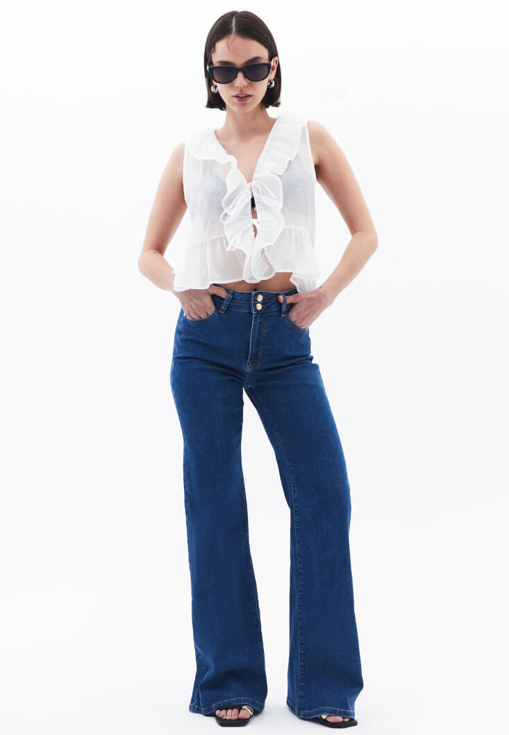 Yüksek Bel Flare Pantolon ve Bluz Kombini