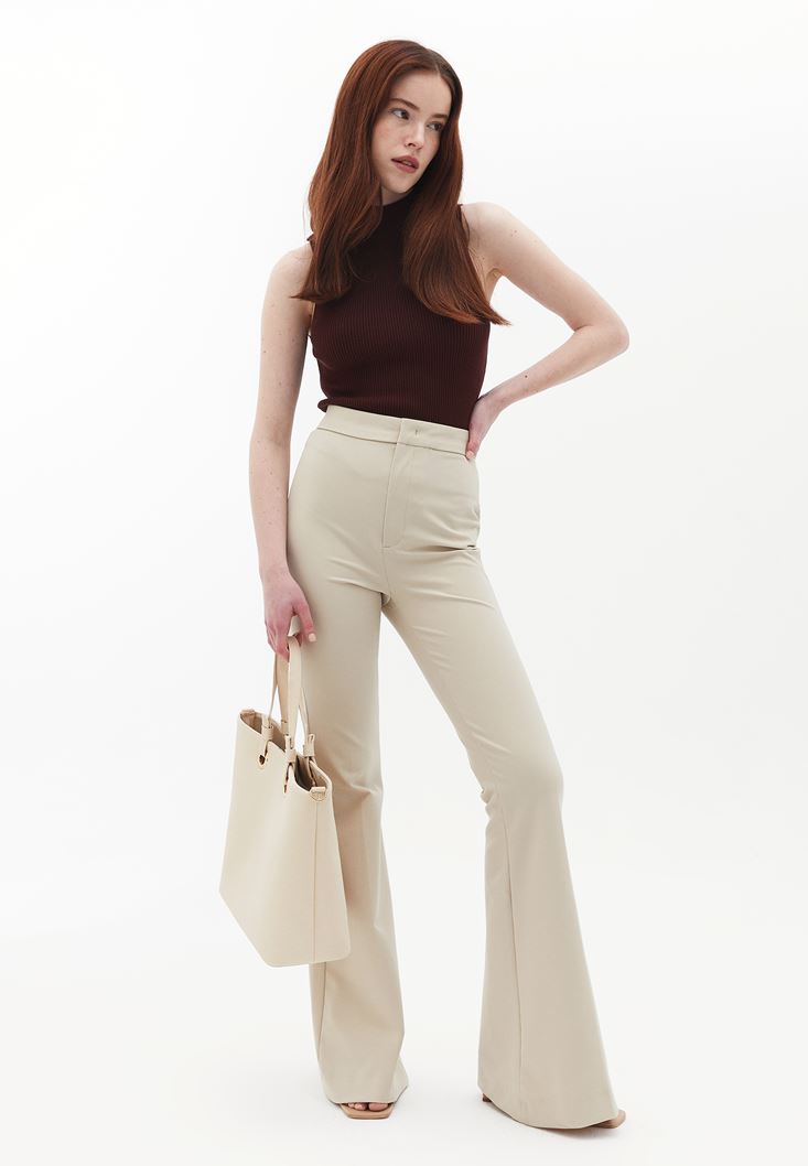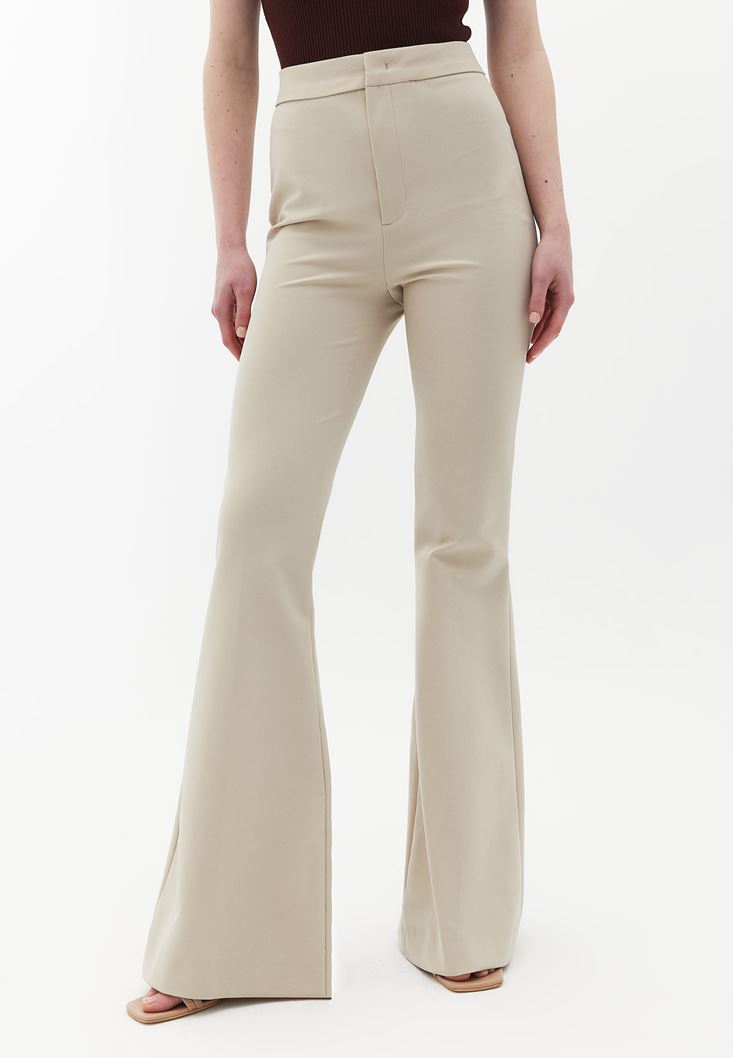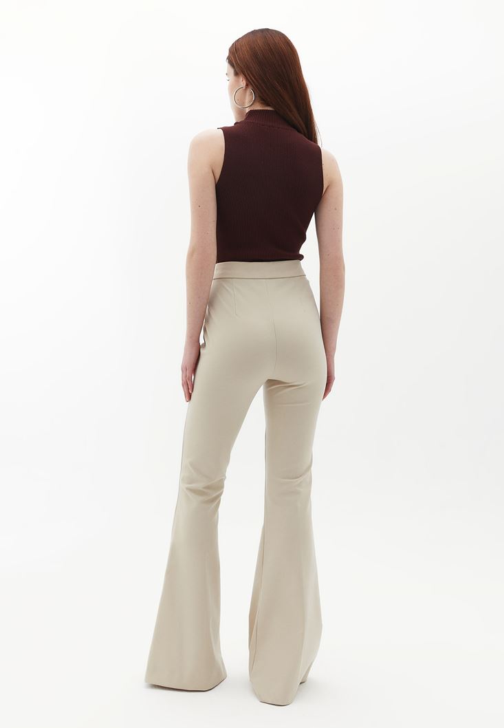 Bej Yüksek Bel Flare Pantolon